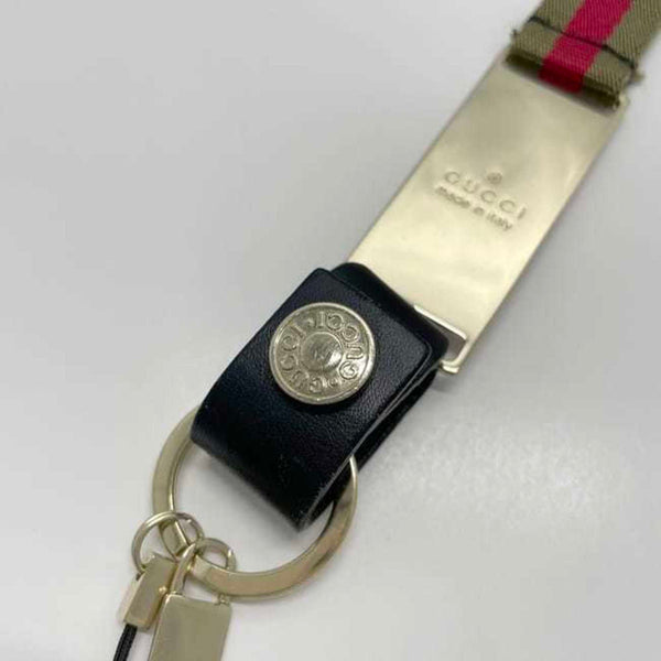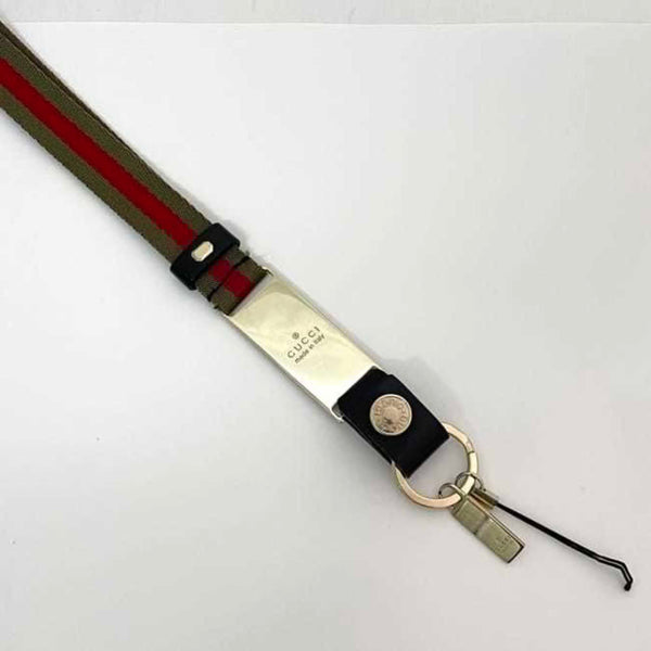 Gucci neck strap ec-23622, khaki green, red, gold, and sherry (039 2194 1089), canvas leather. GP GUCCI for men women.