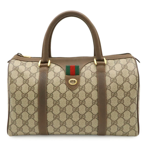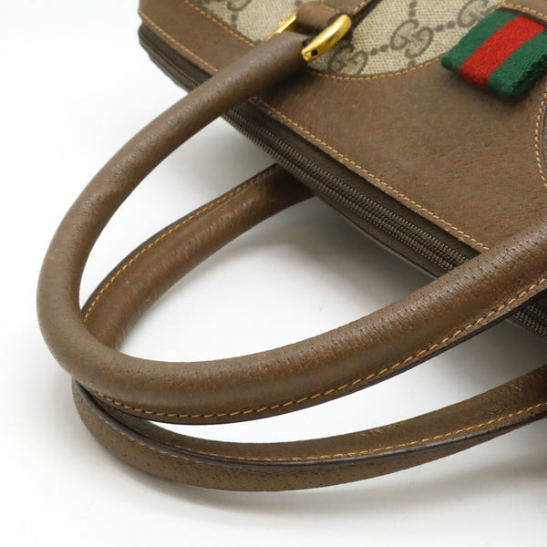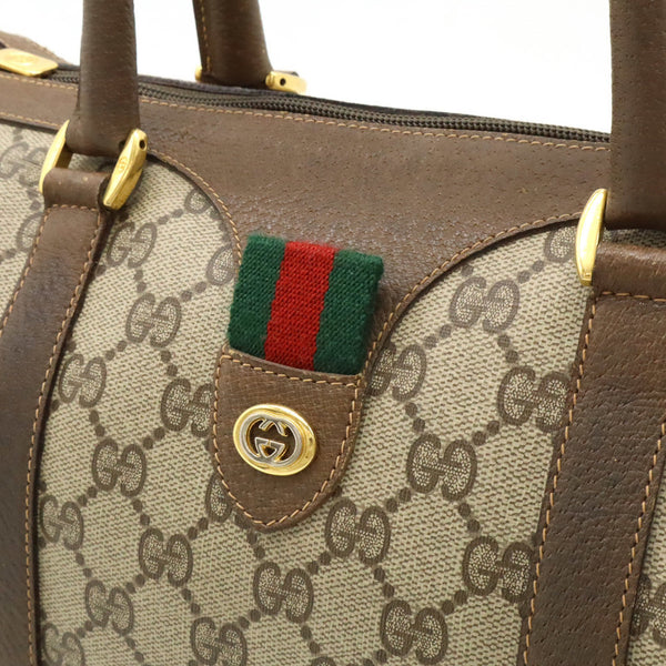 GUCCI Old Gucci GG Plus Sherry Line Handbag PVC Leather Khaki Beige Mocha 40.02.007