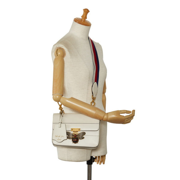 Gucci Queen Margaret Stripe Bee Tricolor Shoulder Bag 476542 White Leather Women's GUCCI