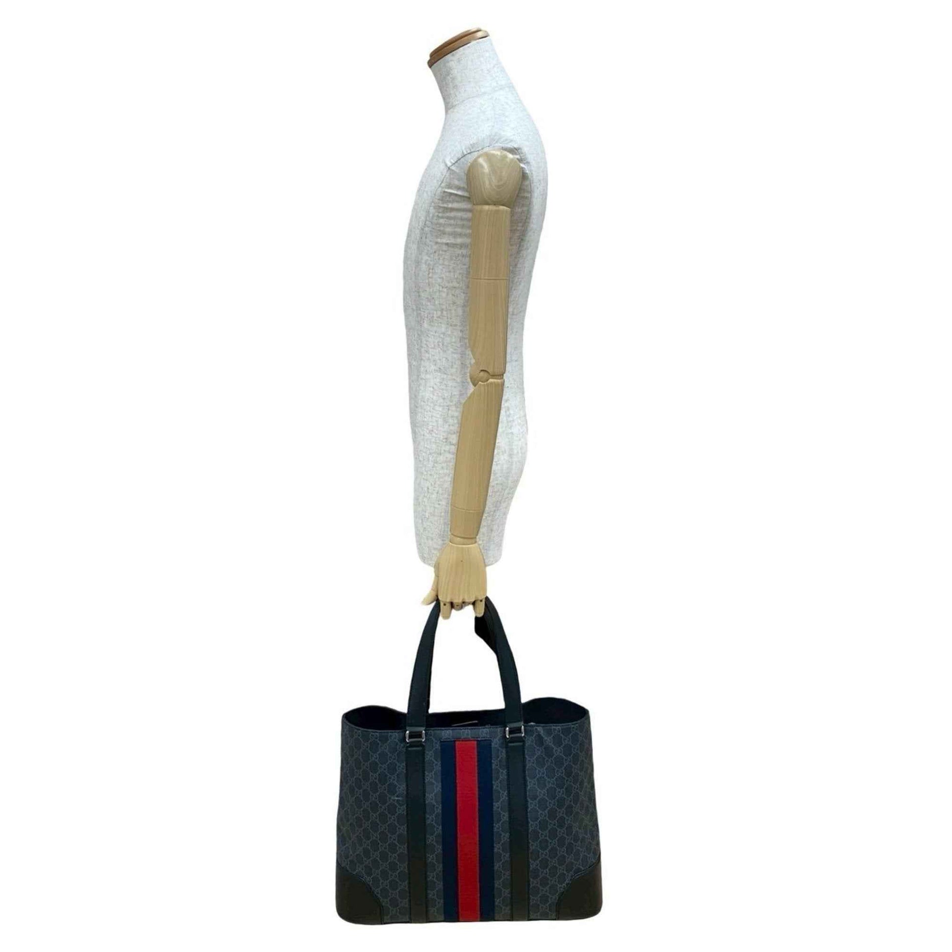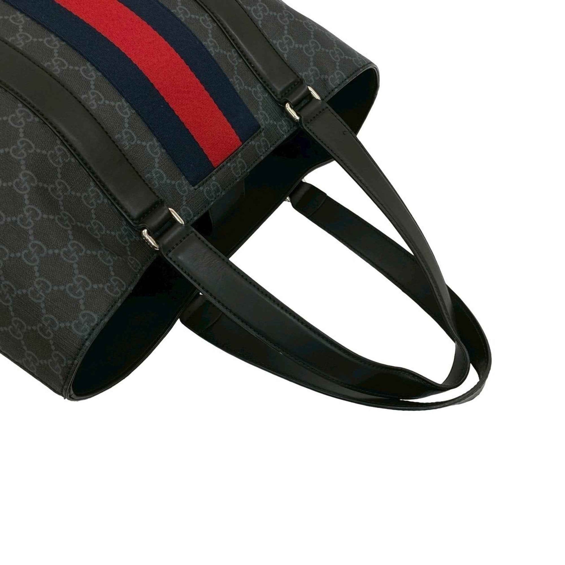 GUCCI Sherry Line GG Supreme Logo Leather Tote Bag, Handbag, Business A4 Size, Black, 77672
