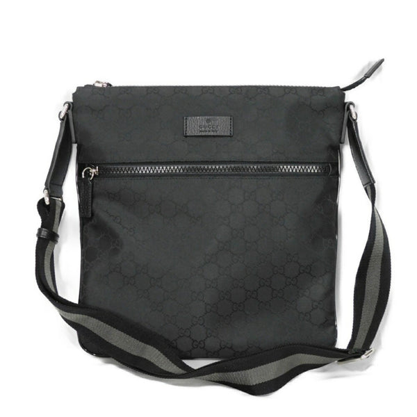 GUCCI Shoulder Bag GG Nylon Medium Web Stripe Gray Black 449185 G1XHN 8615 Men's
