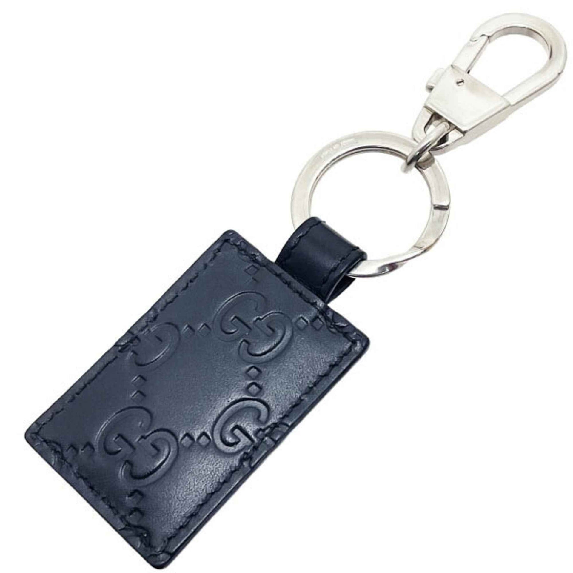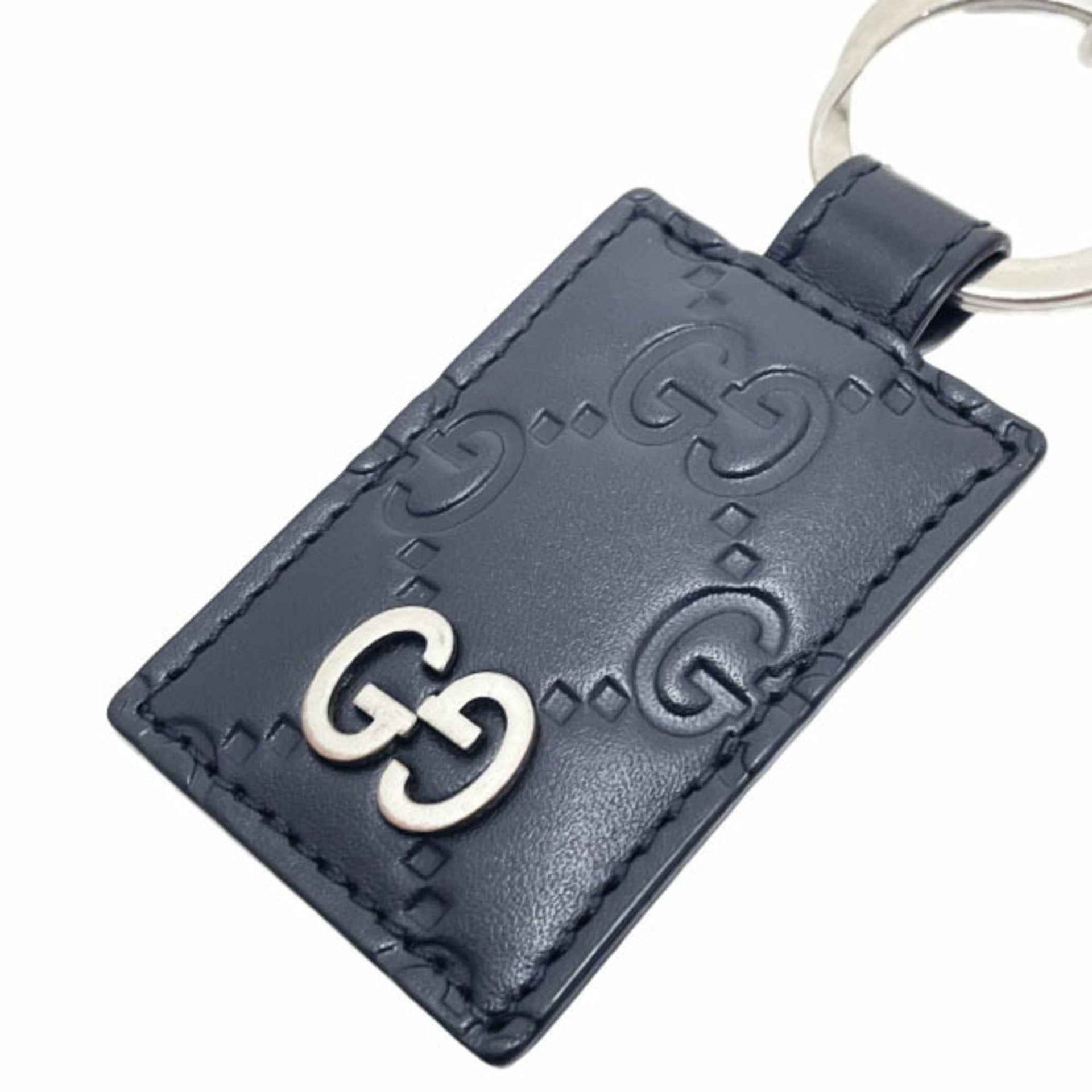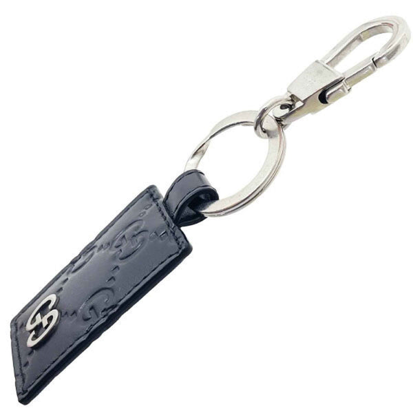 Gucci Signature Leather Key Ring in Black Calfskin (478136) with GG Shima Line Tag, Hook Charm, Bag Charm (TT-15765)