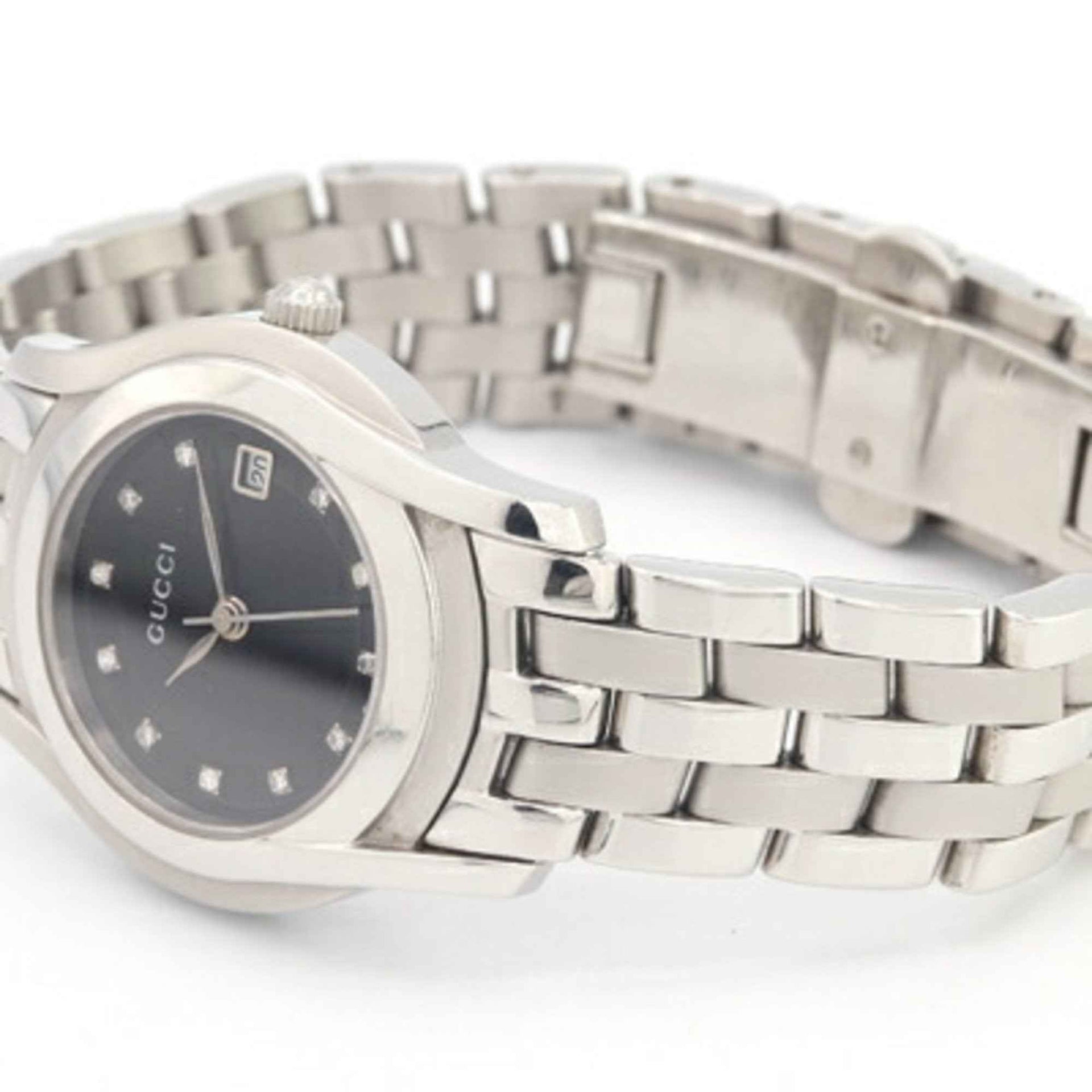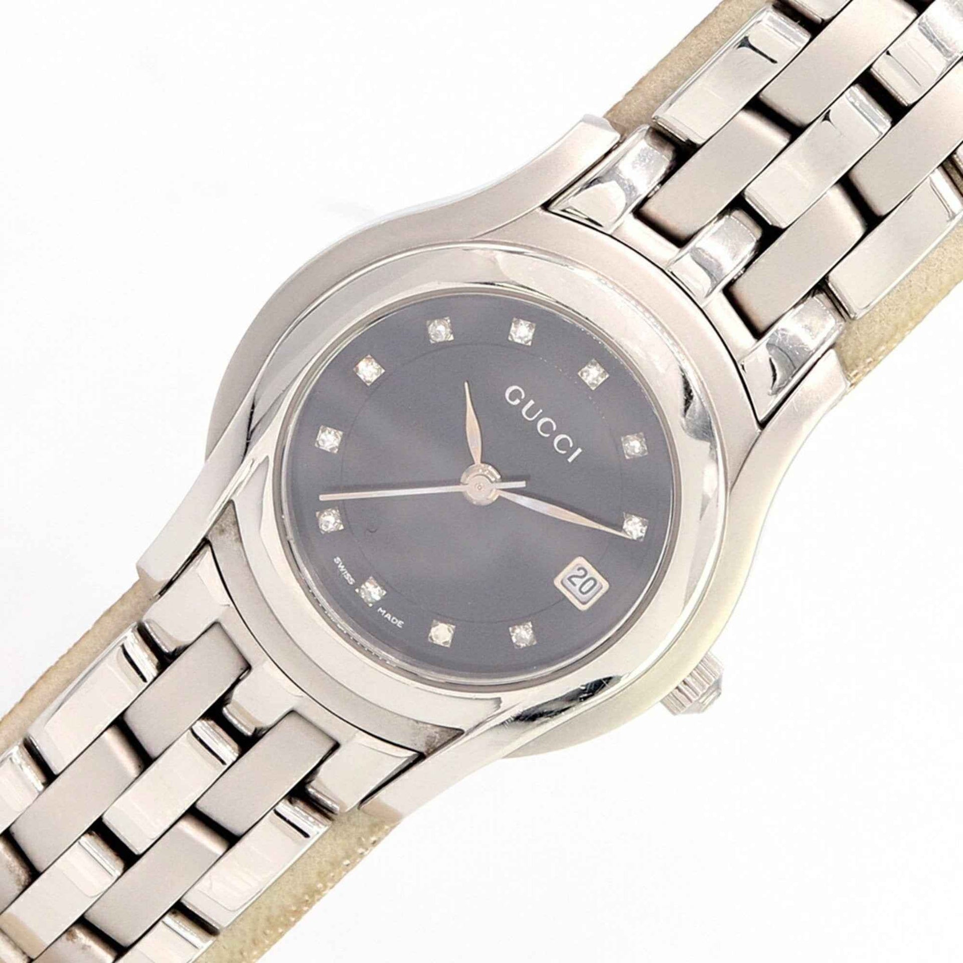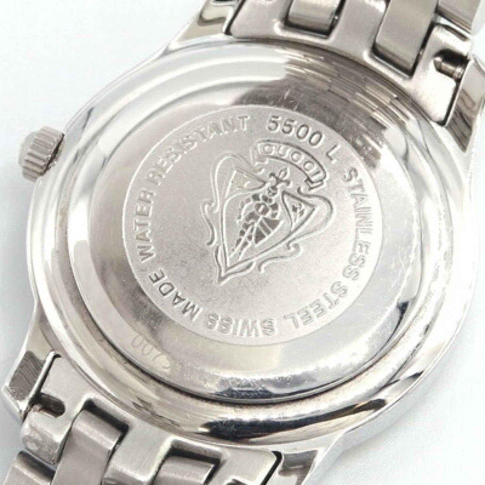 Gucci Women\'s Watch with 11 Diamonds, 5500L Stainless Steel Quartz Movement, Date Display, Analog, Silver Metal Strap