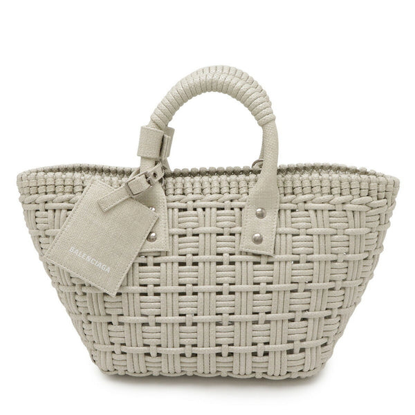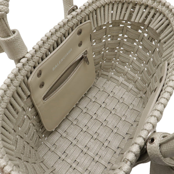 BALENCIAGA Bistro XS Handbag, Basket Bag, Straw, Pale Gray, 671342
