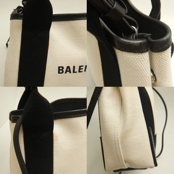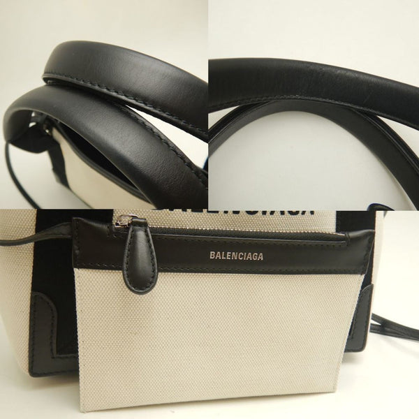 BALENCIAGA Cabas XS 390346 Handbag in Canvas and Leather, Ivory Black, Women\'s, 253165