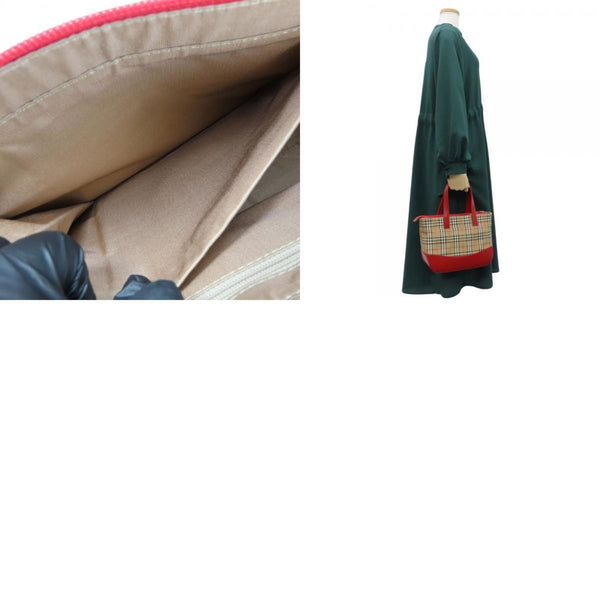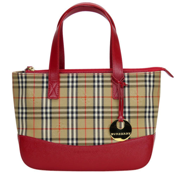 Burberry handbag in Nova check canvas and leather red beige. Women\'s.