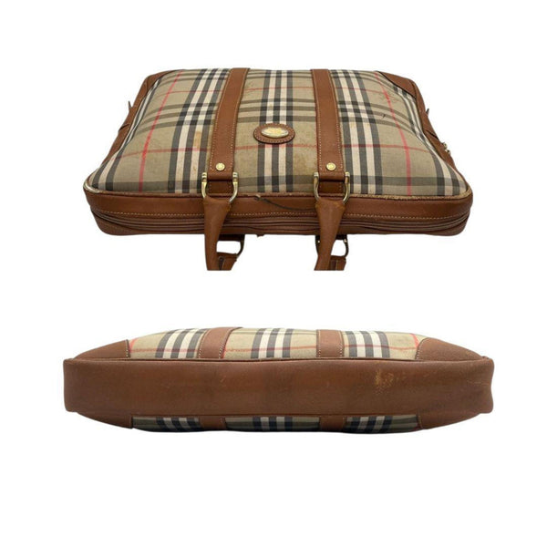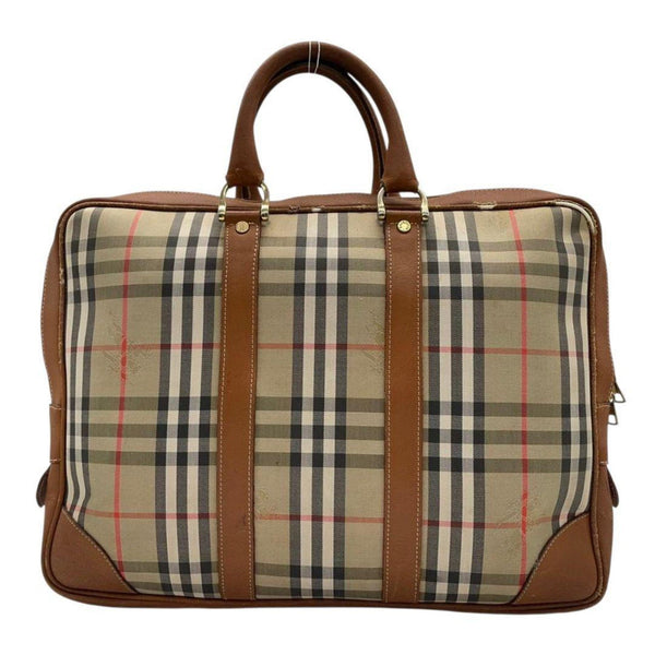 Burberry Nova Check Horse Logo Tote Bag, Handbag, Briefcase, Canvas and Leather, Brown, Gold Hardware, Men\'s Women\'s