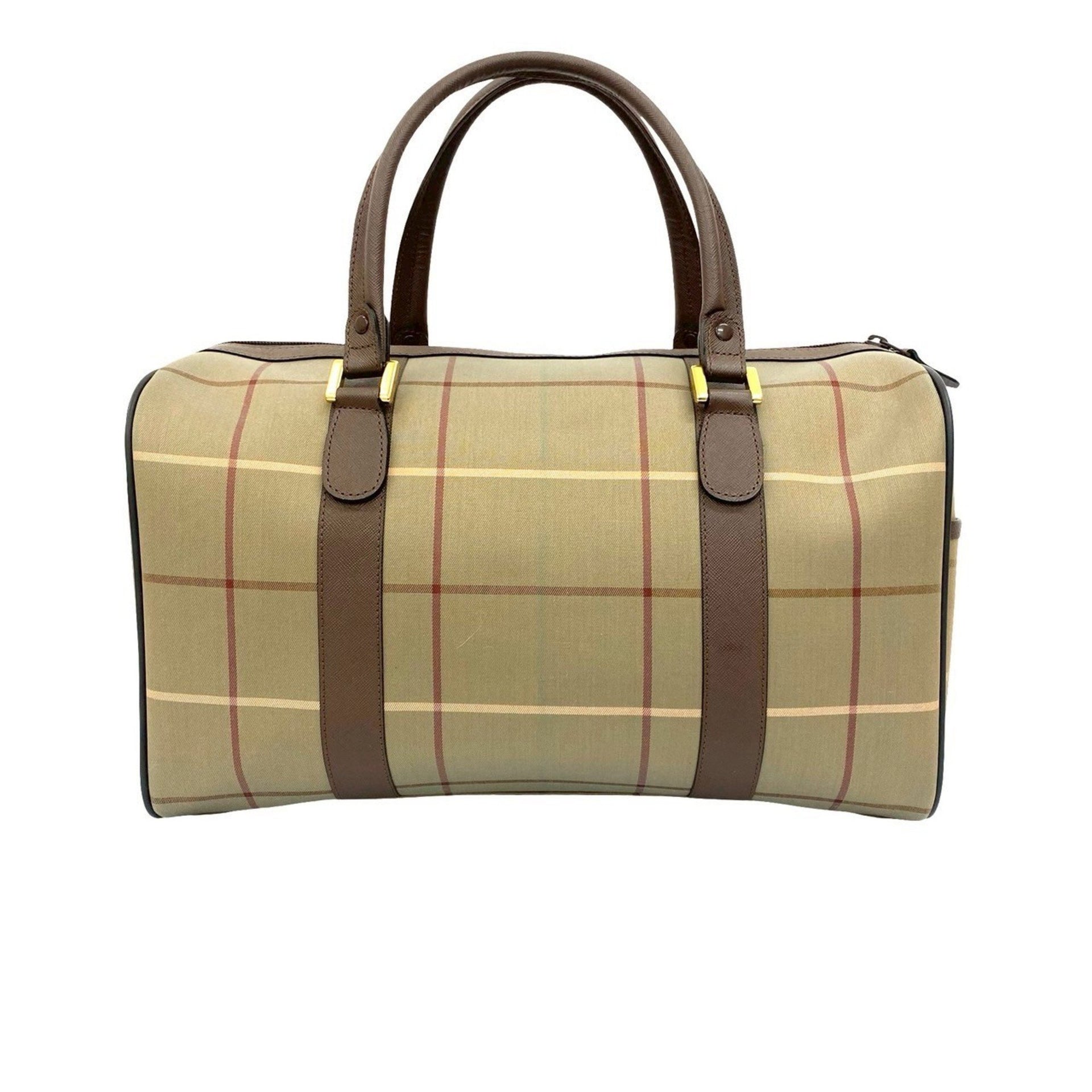 Burberry Nova Check Shadow Horse Logo Canvas and Leather Boston Bag/Handbag, Brown, 97979