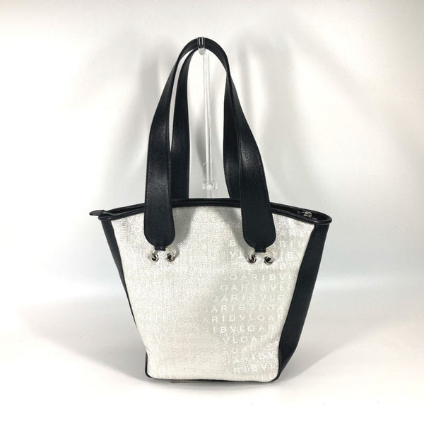BVLGARI Logomania glitter two-tone tote bag, canvas/leather handbag, women\'s white