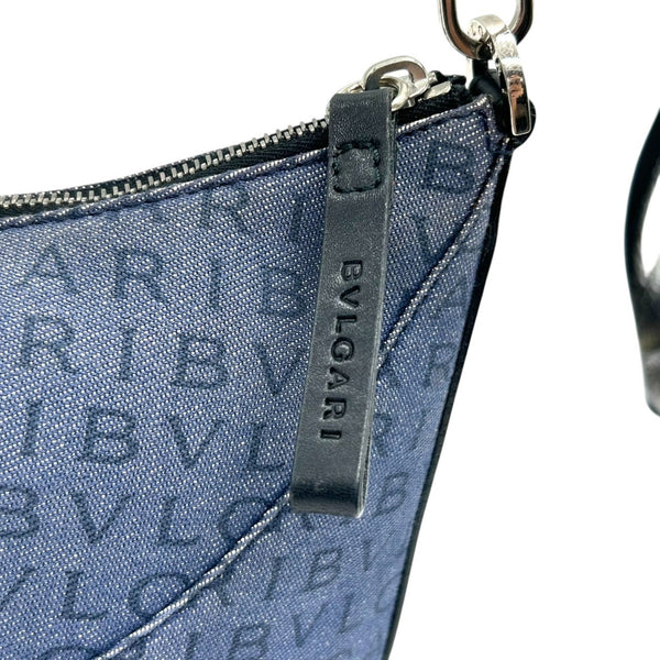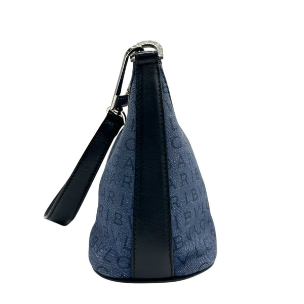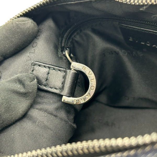 BVLGARI Logomania Handbag Shoulder Bag Accessory Pouch One-Shoulder Canvas Leather Navy Black Women\'s Size s38