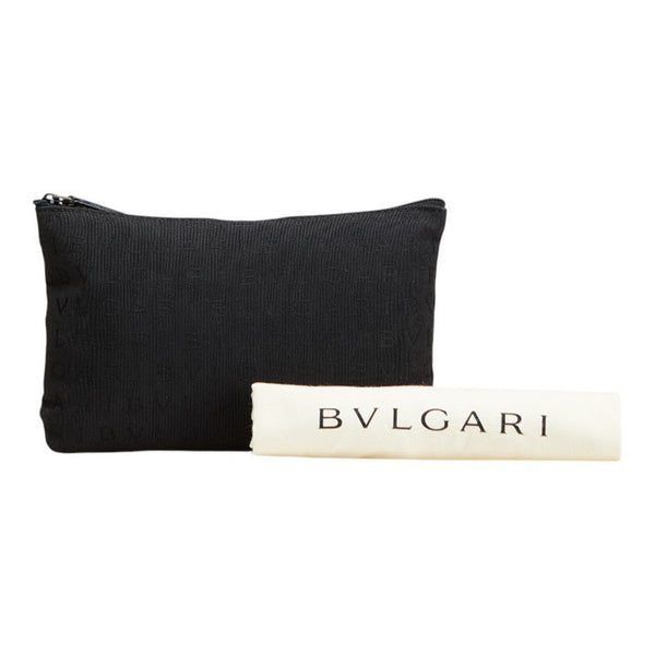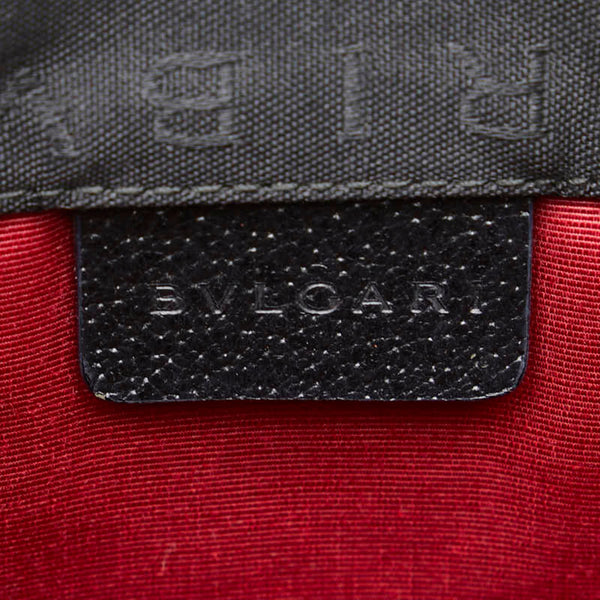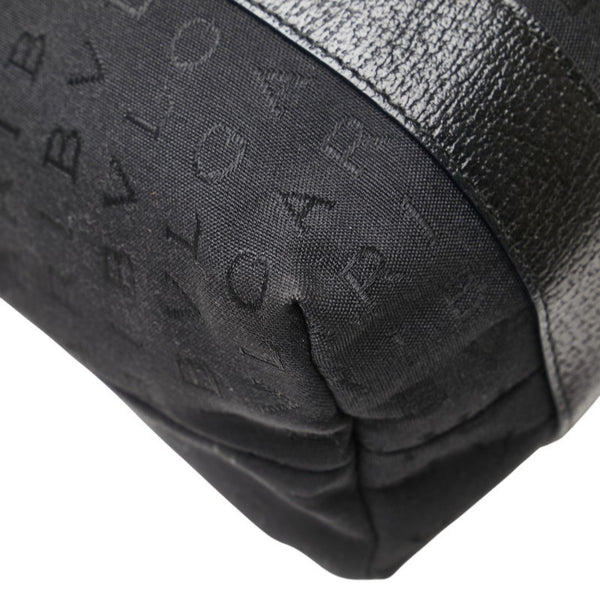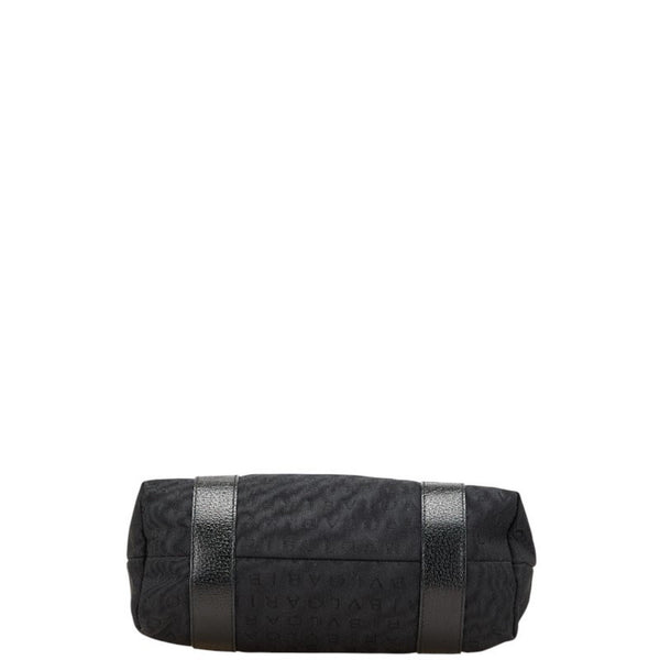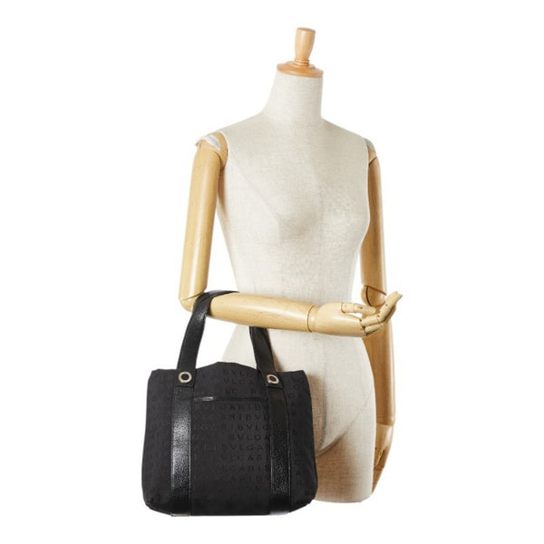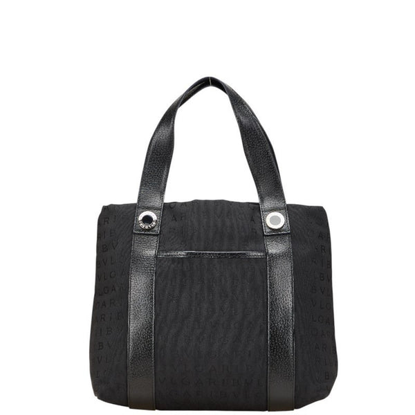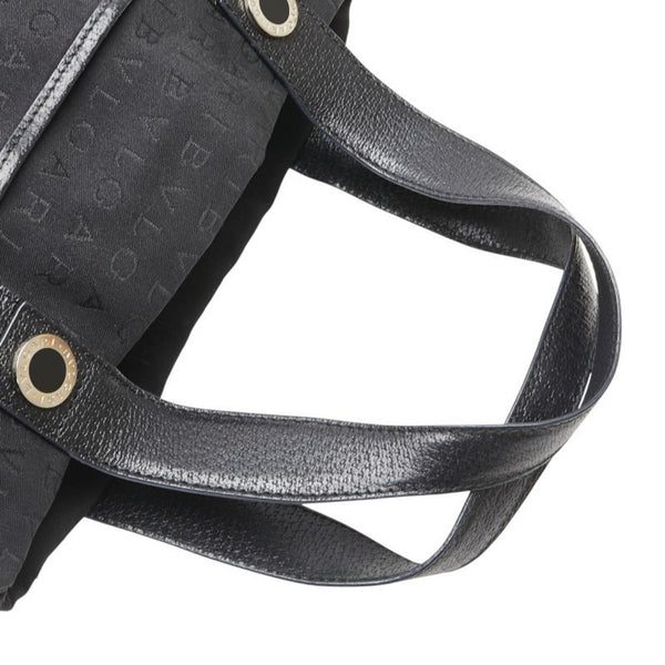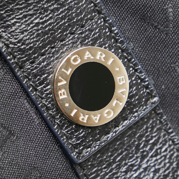 BVLGARI Logomania Tote Bag Handbag Black Canvas Leather Women\'s