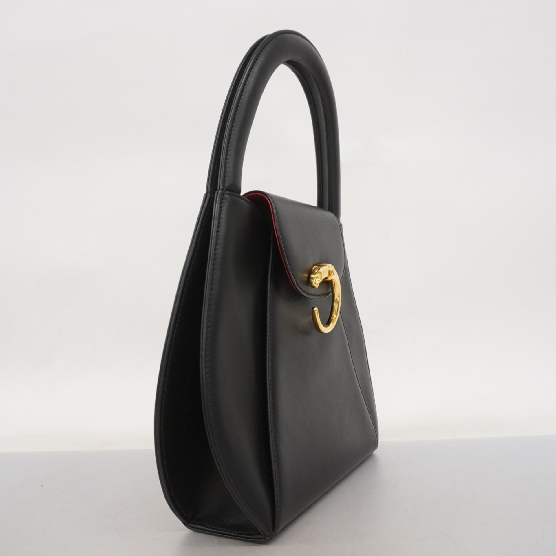 Cartier Panther Handbag Leather Black Women\'s