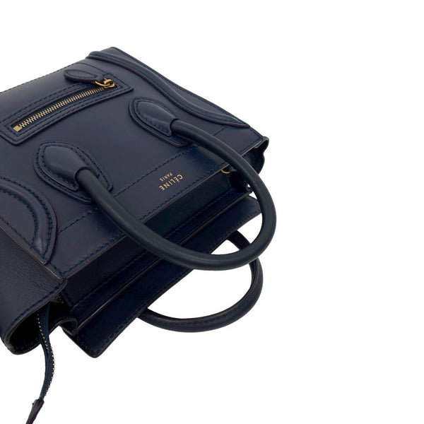 CELINE Luggage Nano Shopper Leather 2-Way Handbag, Tote Bag, Shoulder Navy 68144