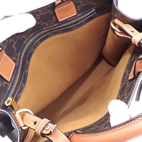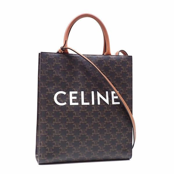 Celine Small Vertical Cabas Handbag, Women\'s, Tan Triomphe Canvas and Calfskin, 191542BZK.04LU, Shoulder Bag, A6051091