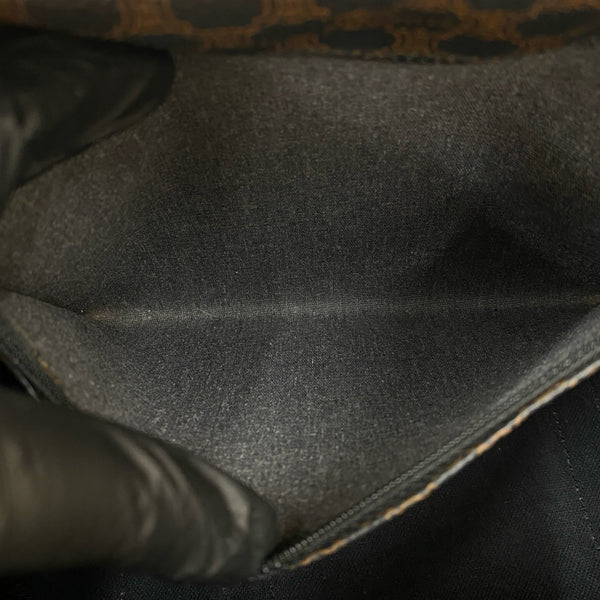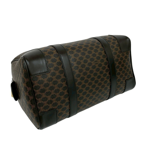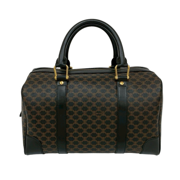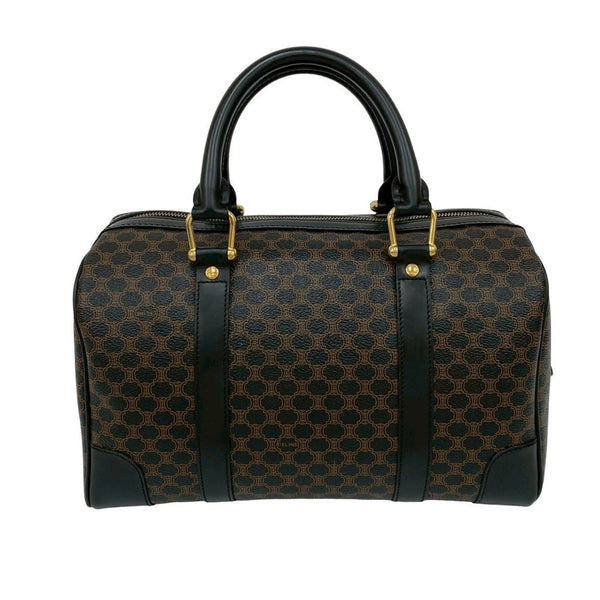 CELINE Vintage Macadam Blason Pattern Leather Handbag/Mini Boston Bag in Black and Brown (70-10)
