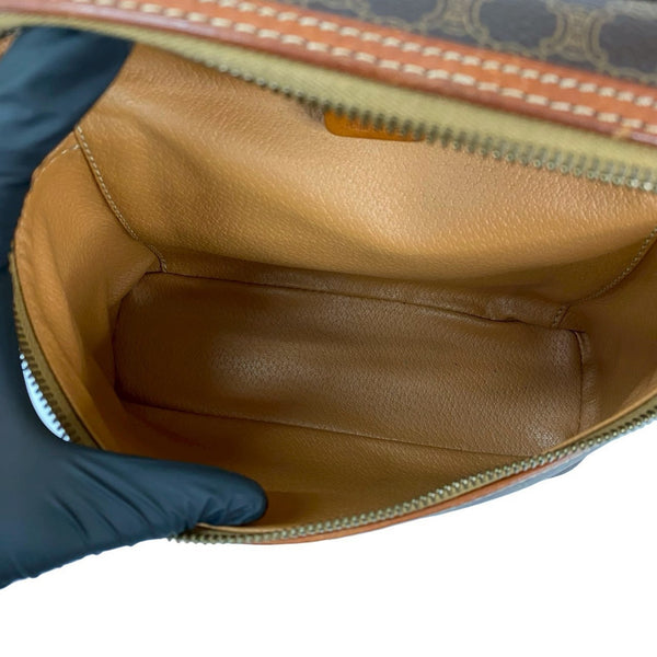 CELINE Vintage Macadam Blason Triomphe Leather Handbag Vanity Bag Brown 72496