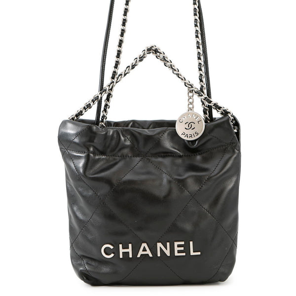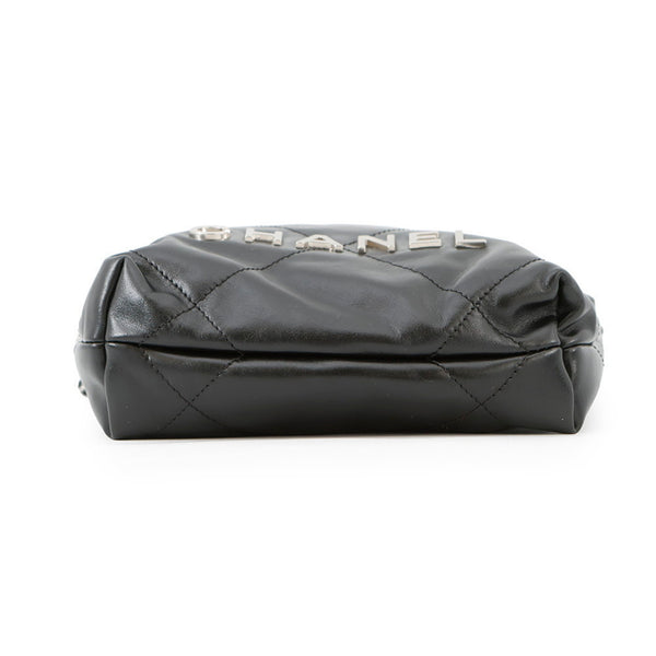 CHANEL 22 Mini Handbag with Coco Mark, Shiny Calfskin Leather, AS3980, 2-Way, Black