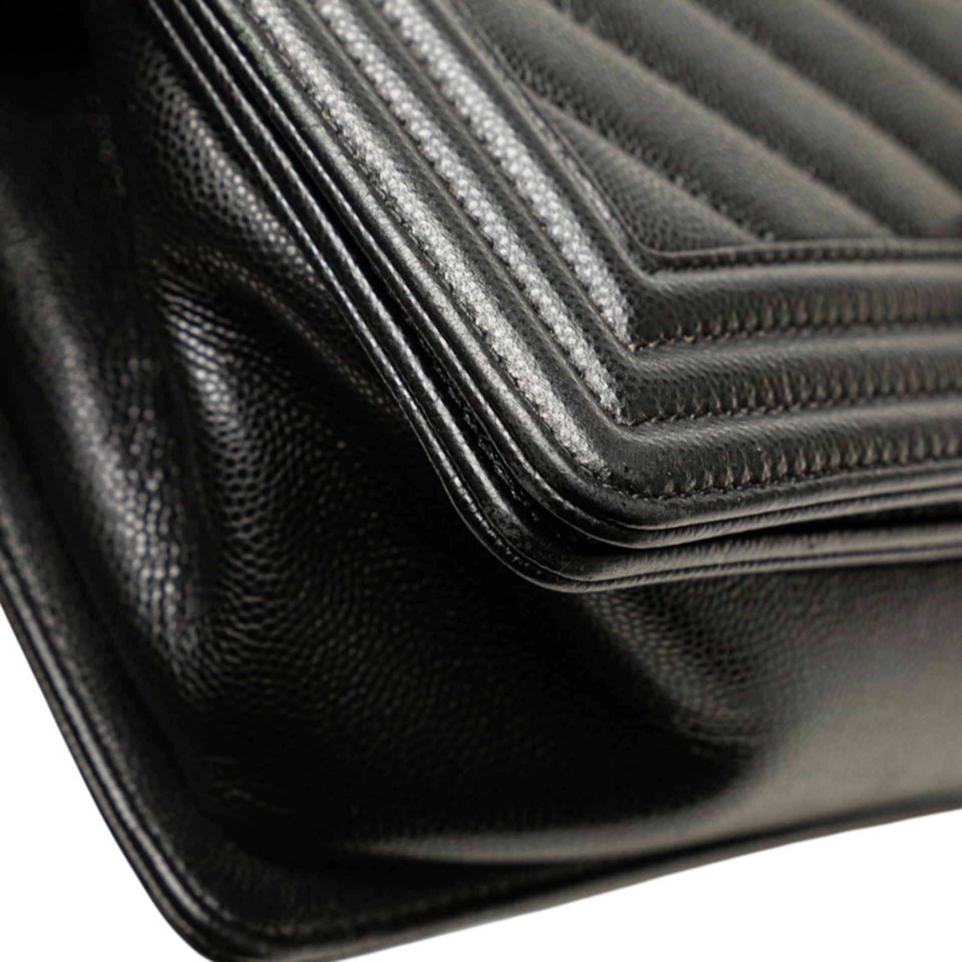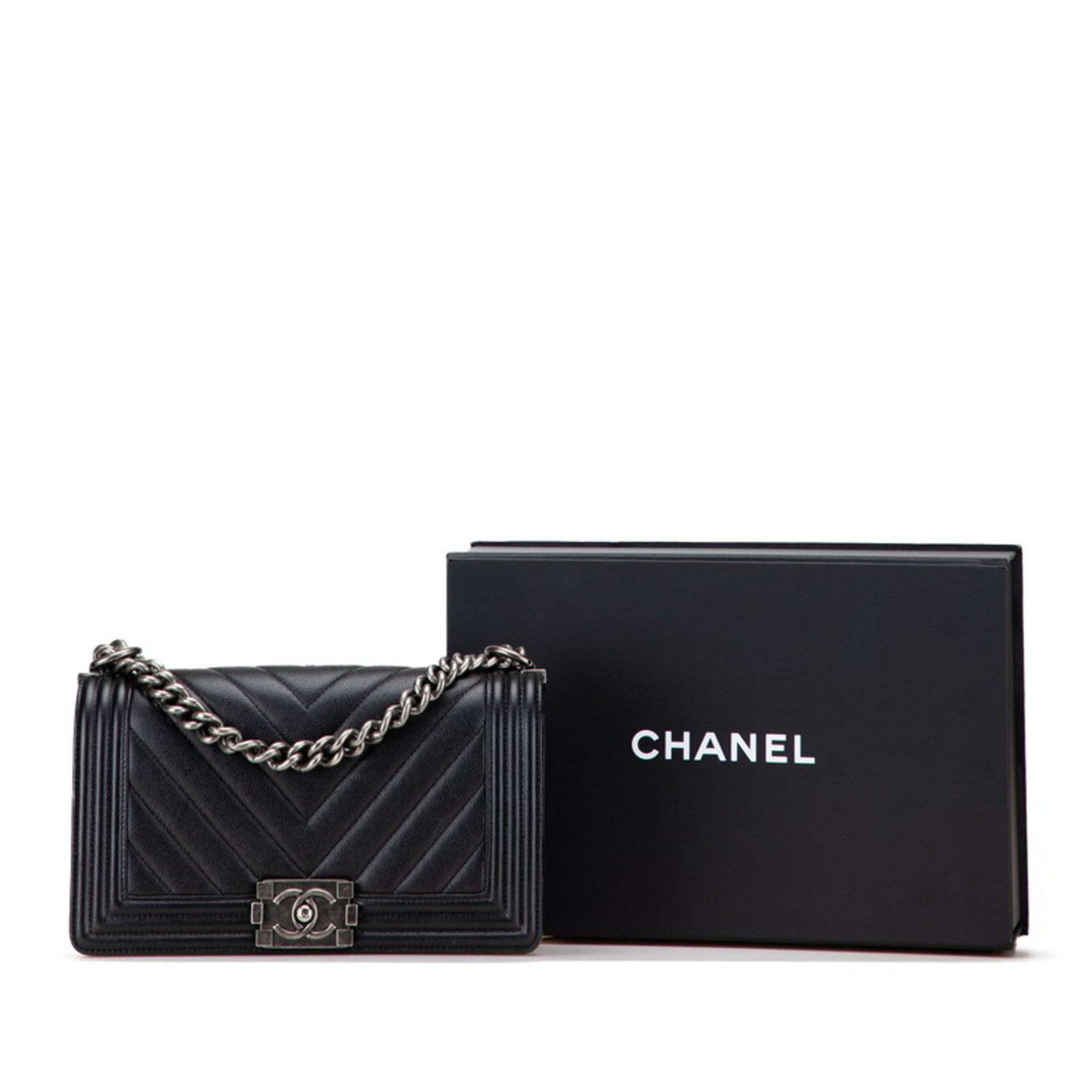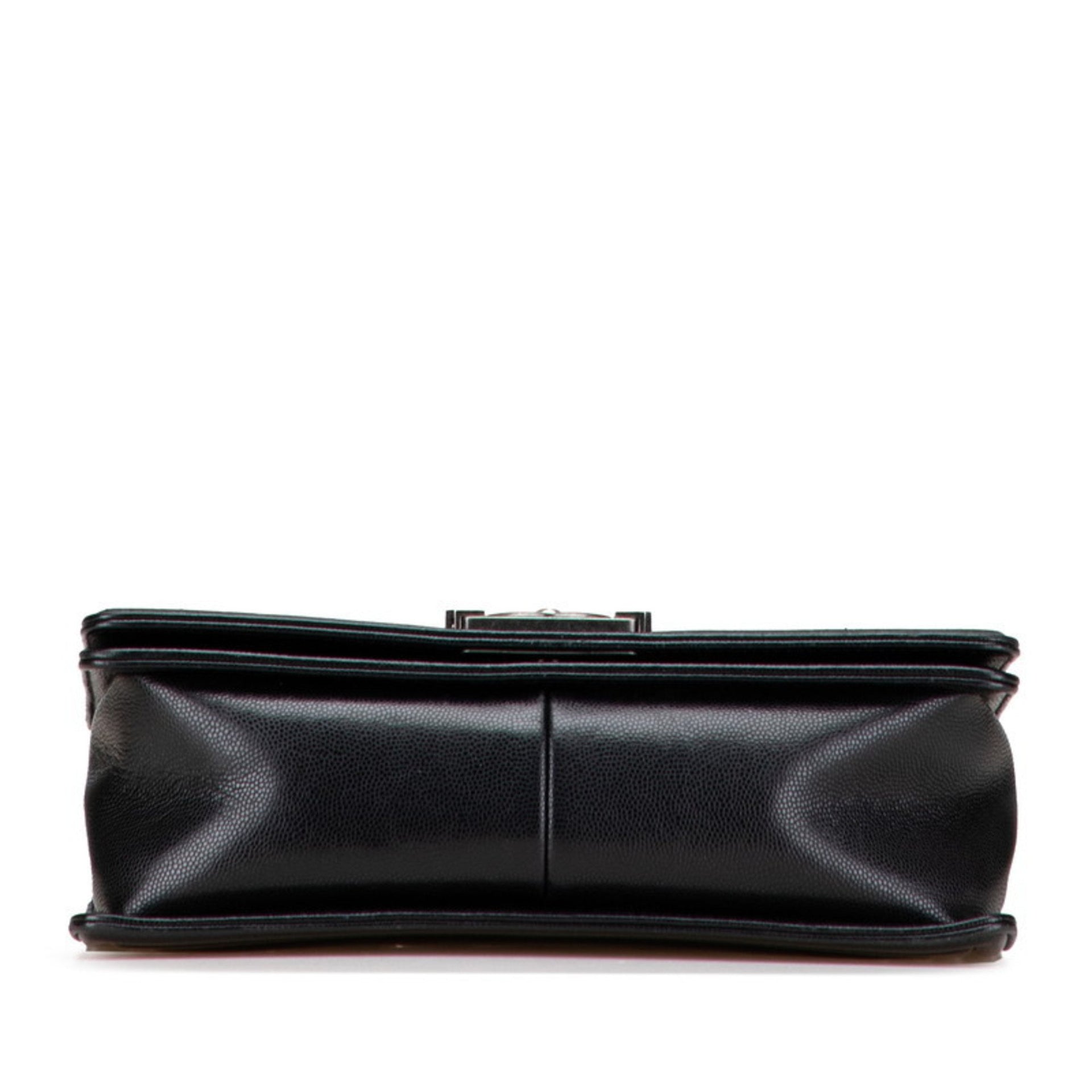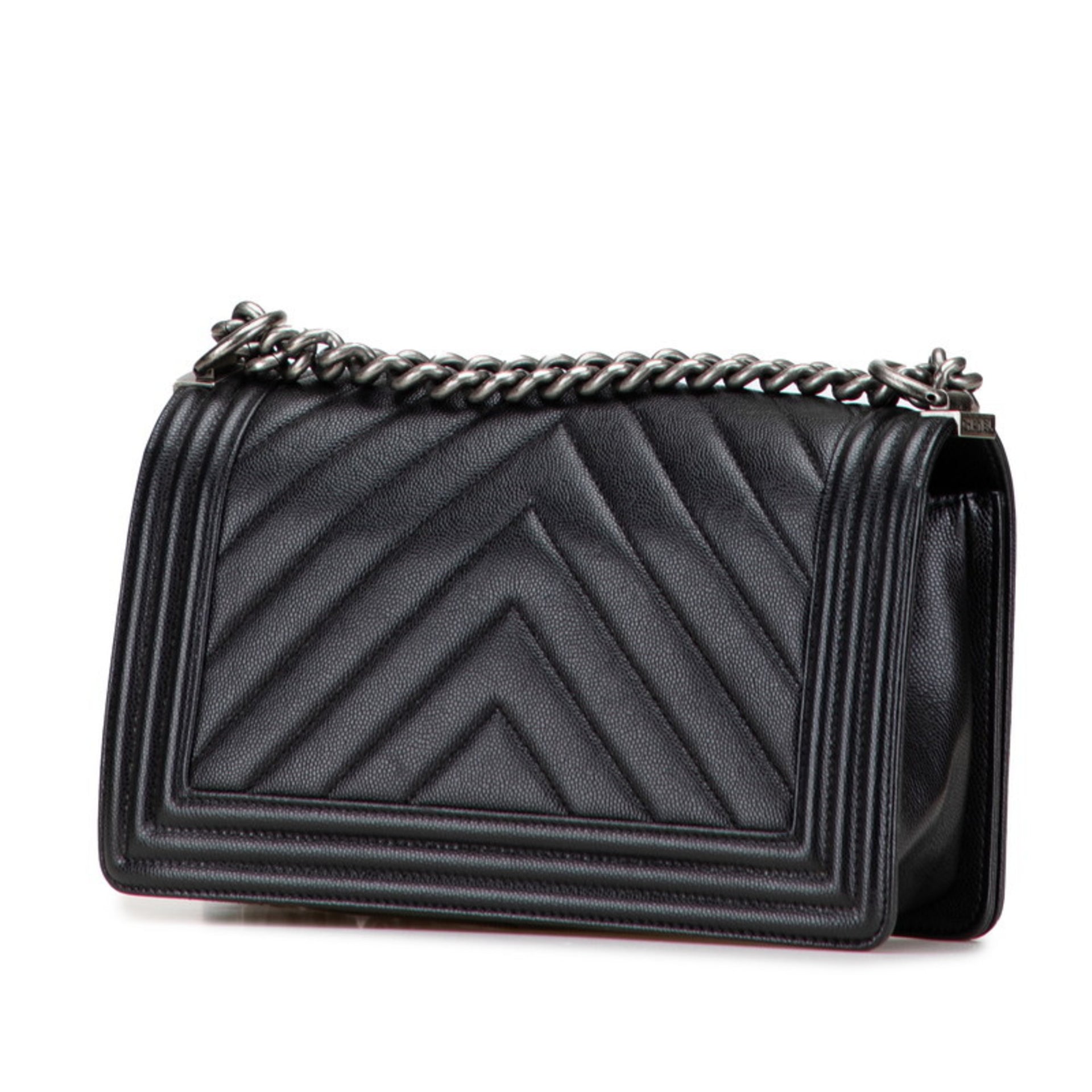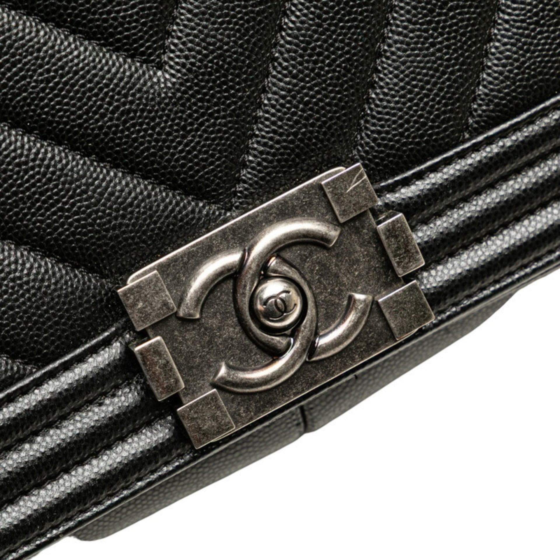 CHANEL Boy Chanel Chevron Coco Mark Chain Shoulder Bag Handbag Black Silver Caviar Skin Women\'s