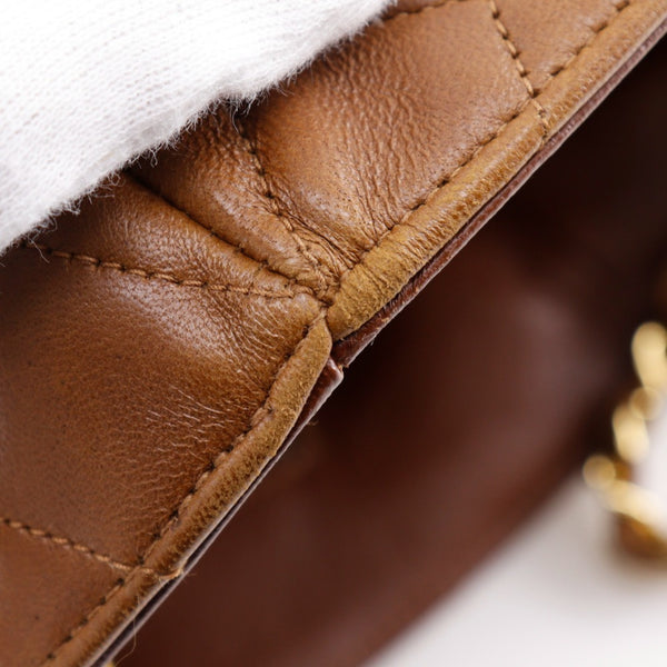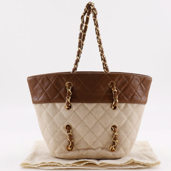 CHANEL Chain Bag, Matelasse Canvas and Leather Handbag, Brown, Women\'s