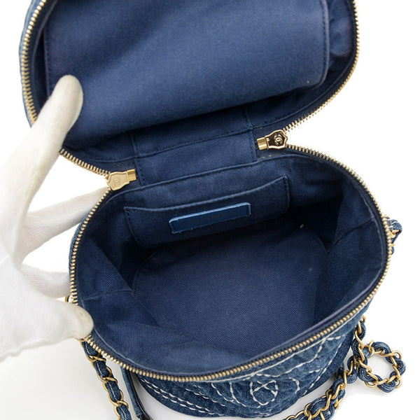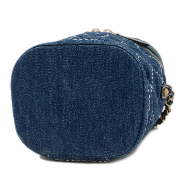 Chanel Coco Mark Vanity Chain Shoulder Bag Handbag Denim Blue AS1336