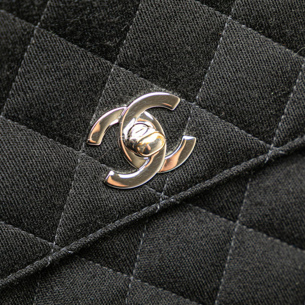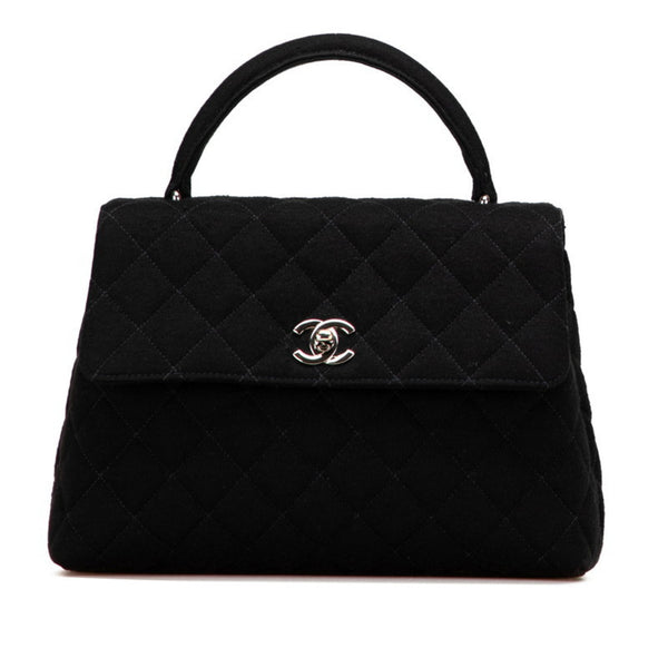 CHANEL Matelasse 25 Coco Mark Handbag with Top Handles, Black Cotton, Women\'s