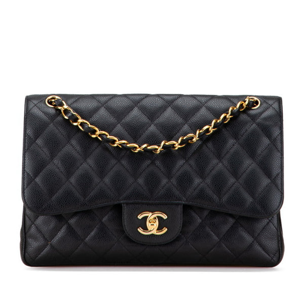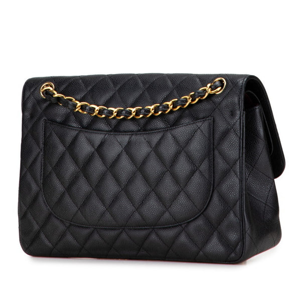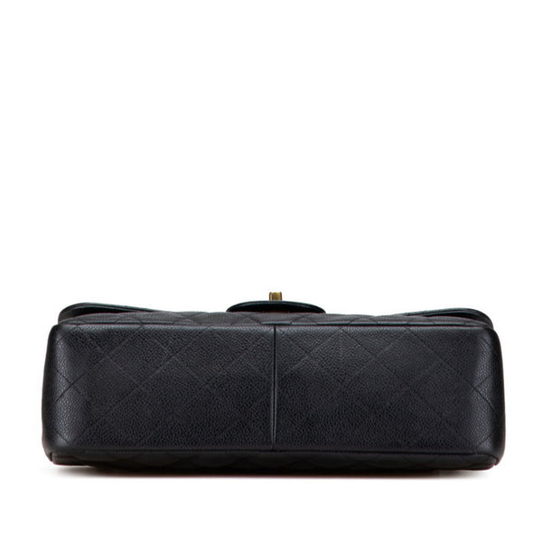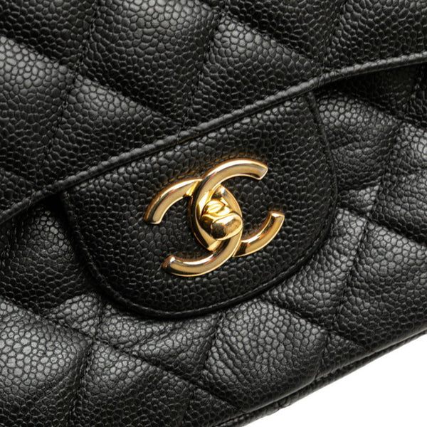 CHANEL Matelasse Coco Mark Double Flap Chain Shoulder Bag Handbag Black Caviar Skin Women\'s