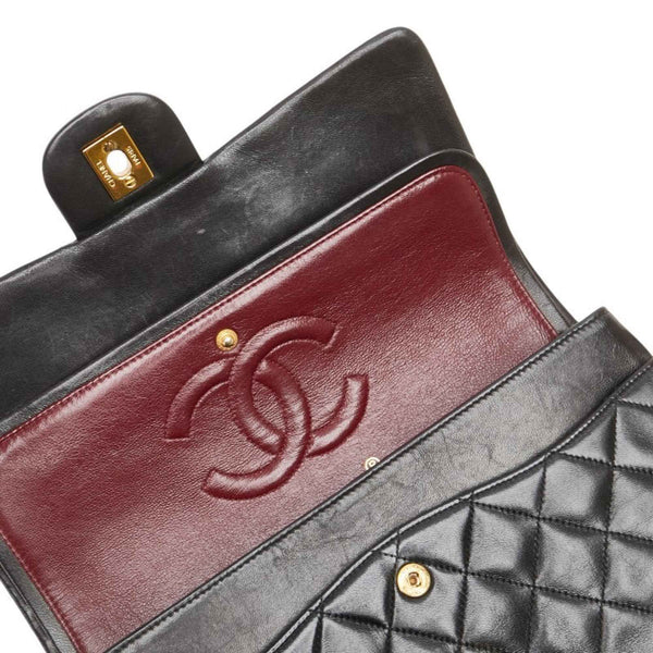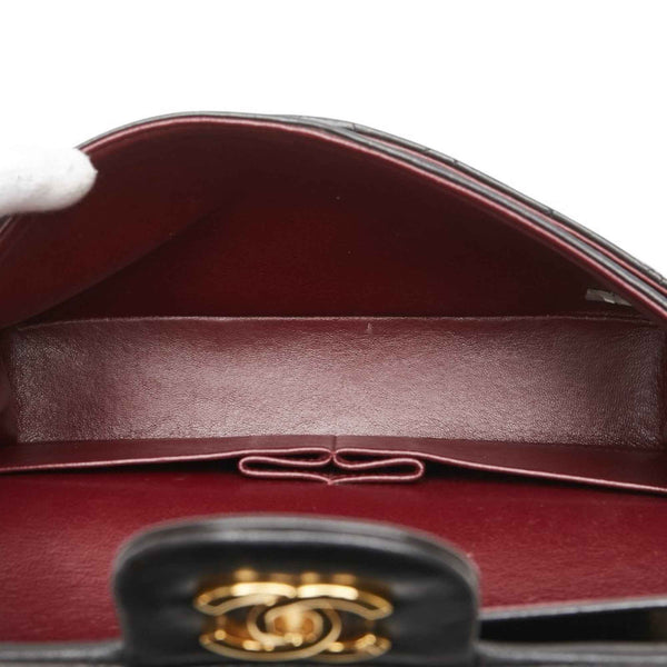CHANEL Matelasse Coco Mark Double Flap Chain Shoulder Bag Handbag Black Lambskin Women\'s