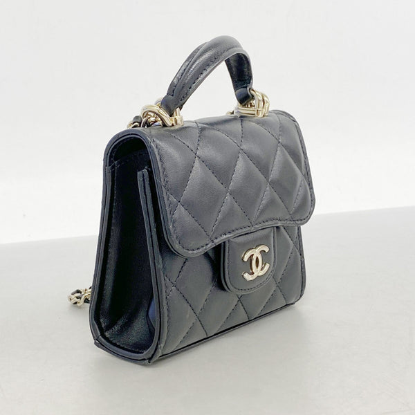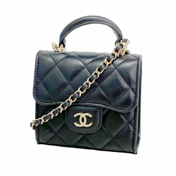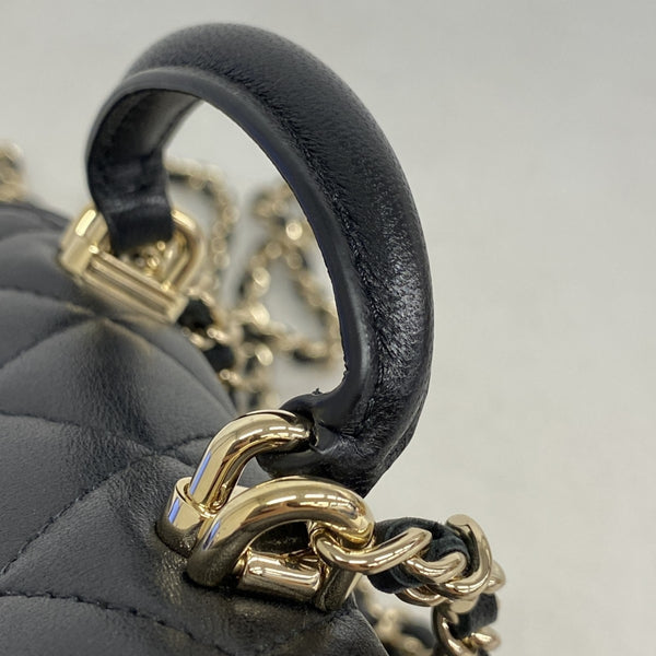 Chanel Matelasse Handbag with Chain Shoulder Strap, Black and Champagne Lambskin, 2-Way Bag for Women
