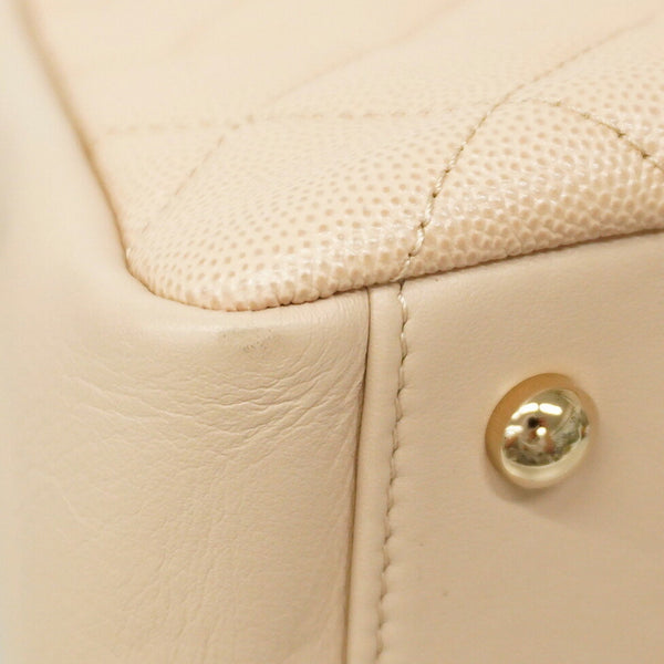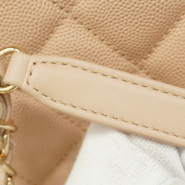 Chanel Matelasse Handbag with Chain Shoulder Strap, Caviar Skin, Beige/Champagne, 2-Way Bag for Women, P1376590