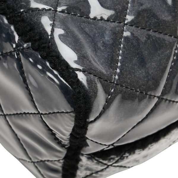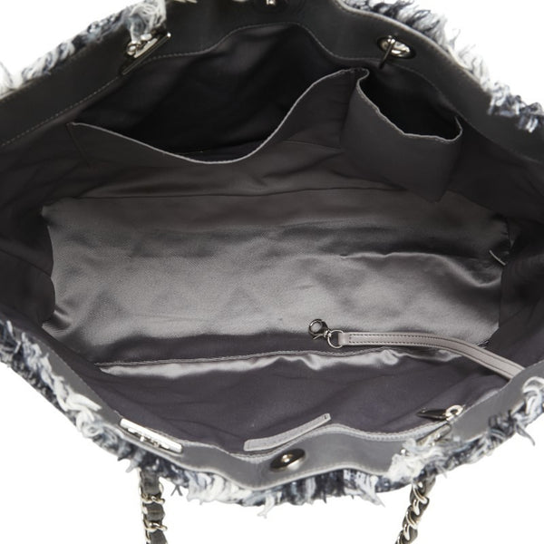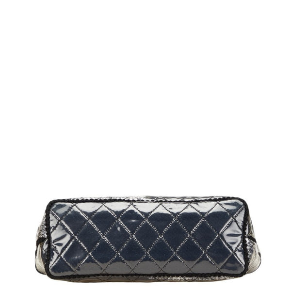 Chanel Matelasse Tote Bag Handbag Black Gray Vinyl Tweed Women\'s CHANEL