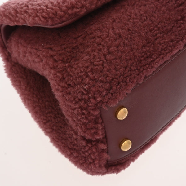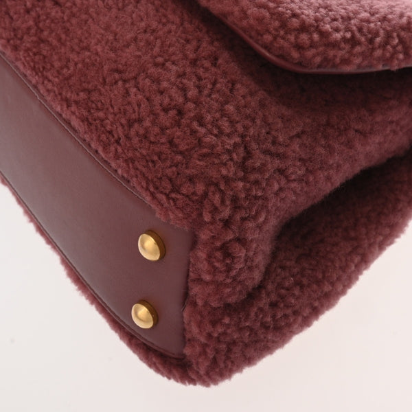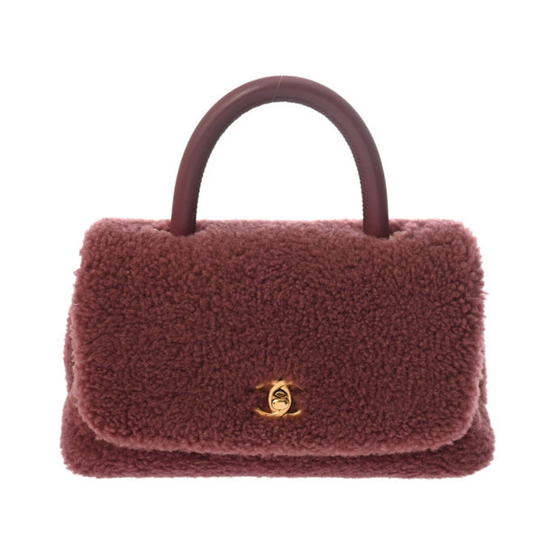 CHANEL Top Handle Flap Bag XS 2WAY Bordeaux A92990 Women\'s Shearling Handbag