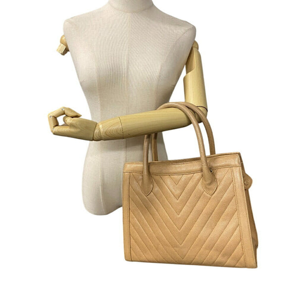 CHANEL V-Stitch 2-Way Handbag, Women\'s, Beige
