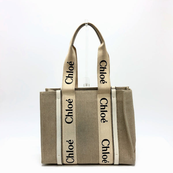Chloé Chloe Logo Woody Medium Handbag/Tote Bag in Beige Canvas