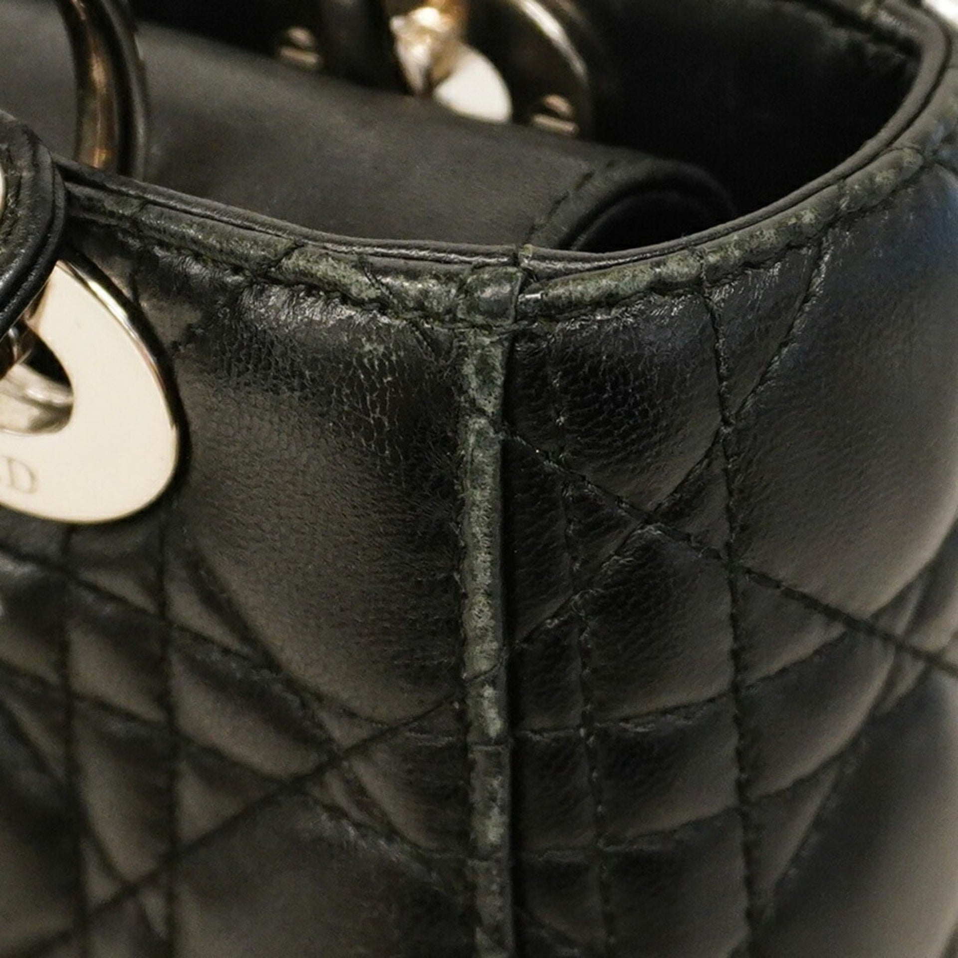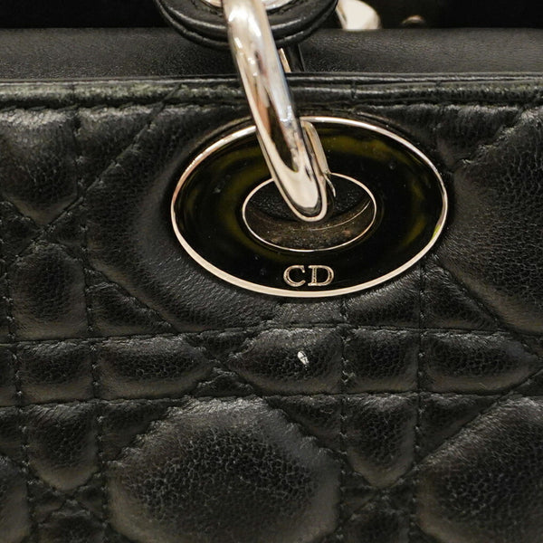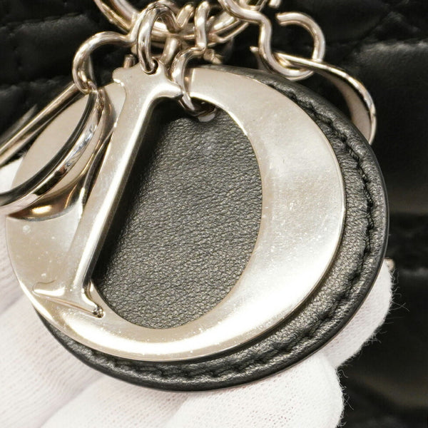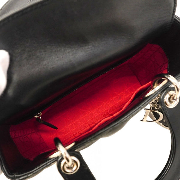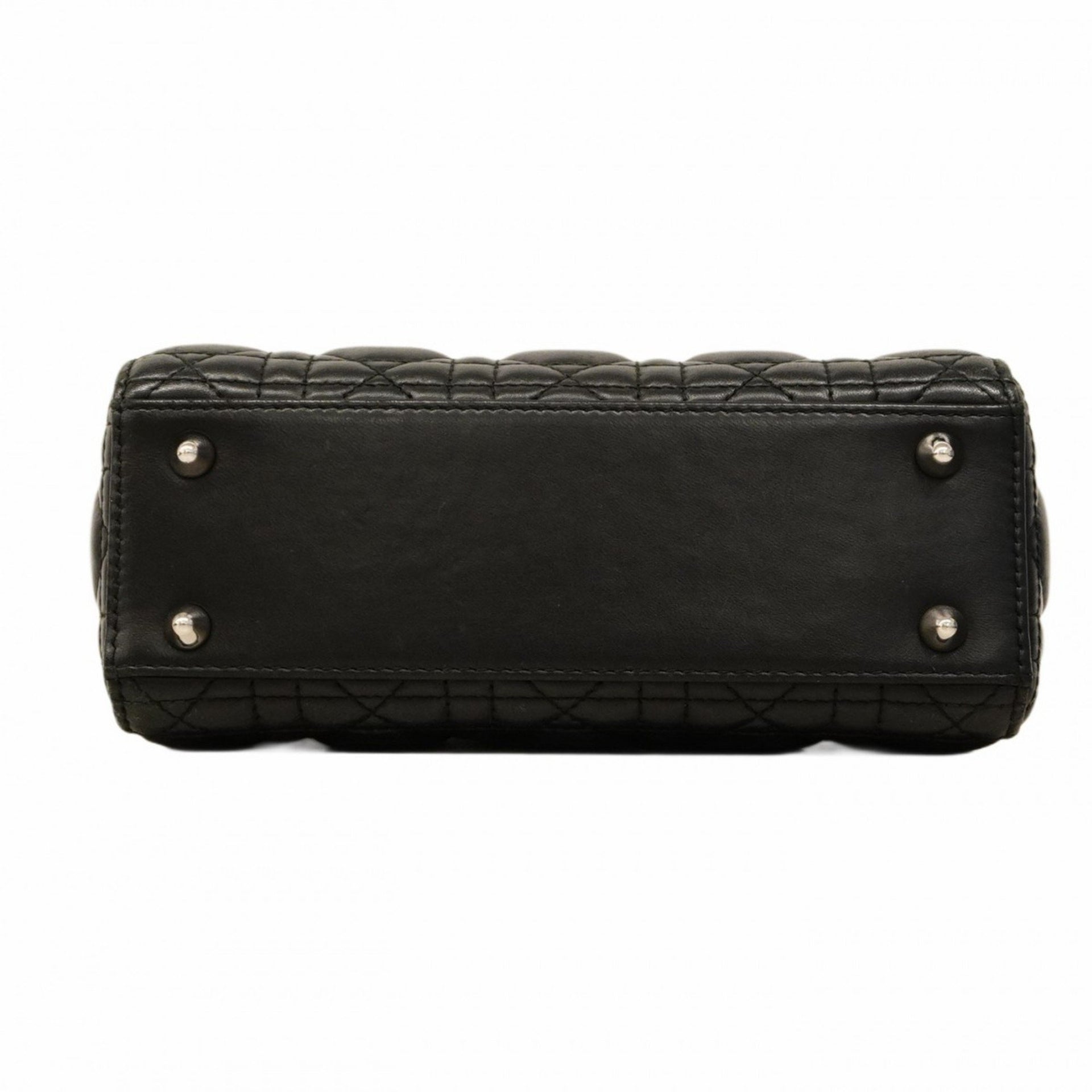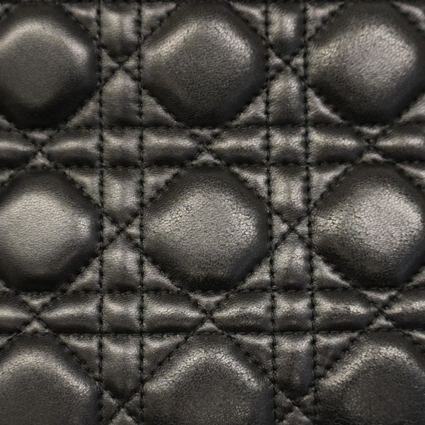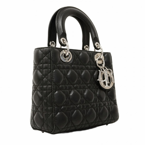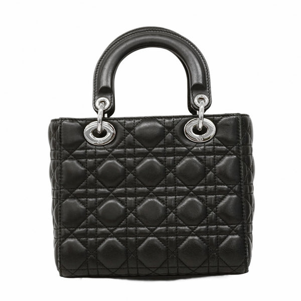 Christian Dior Cannage Lady Handbag, Black Leather, 2-Way Bag for Women