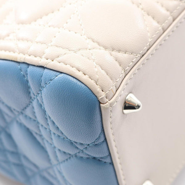 Christian Dior Dior Lady Cannage Handbag, Leather, Women\'s, Beige, Blue, Pink
