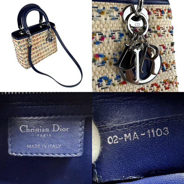 Christian Dior Lady handbag/shoulder bag in raffia and leather, beige, multicolor, navy, silver, women\'s z7035