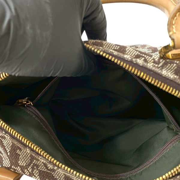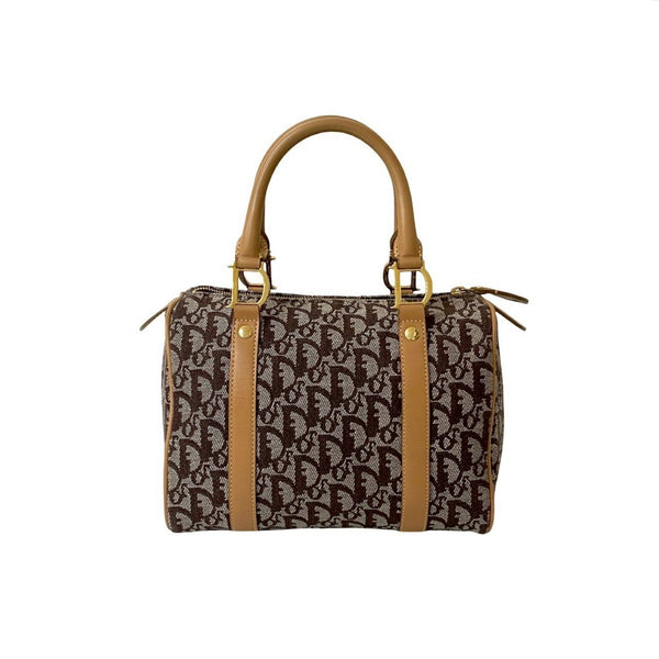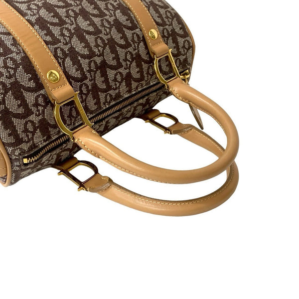 Christian Dior Trotter Print Leather Canvas Handbag/Mini Boston Bag Brown c43-8