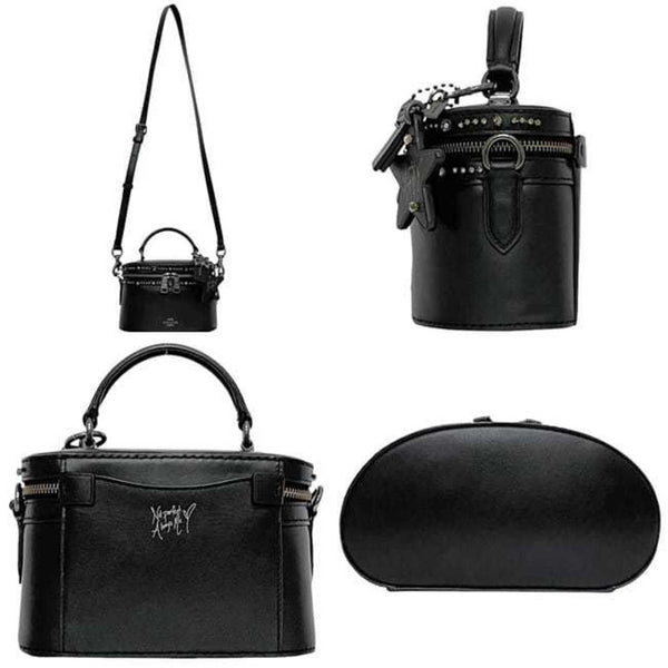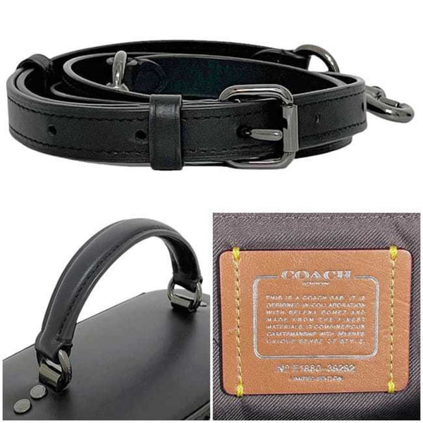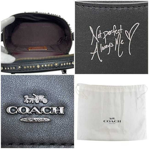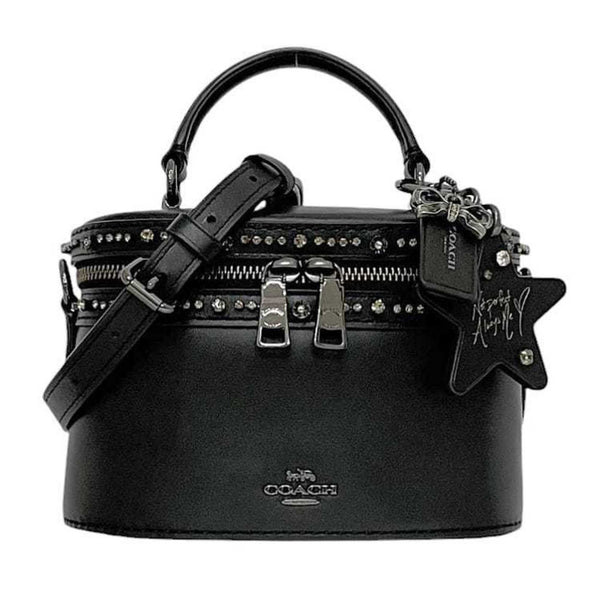 Coach 2-way Vanity Bag f-23990 Black Selena Gomez 39292 Leather Rhinestone Handbag Collaboration Crossbody Bucket