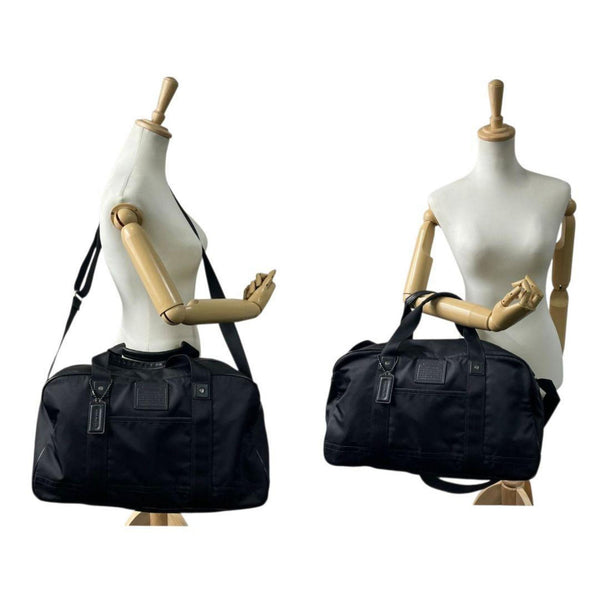 Coach Boston bag, black canvas and leather, 2-way, one-shoulder tote handbag with logo plate, F70504 X