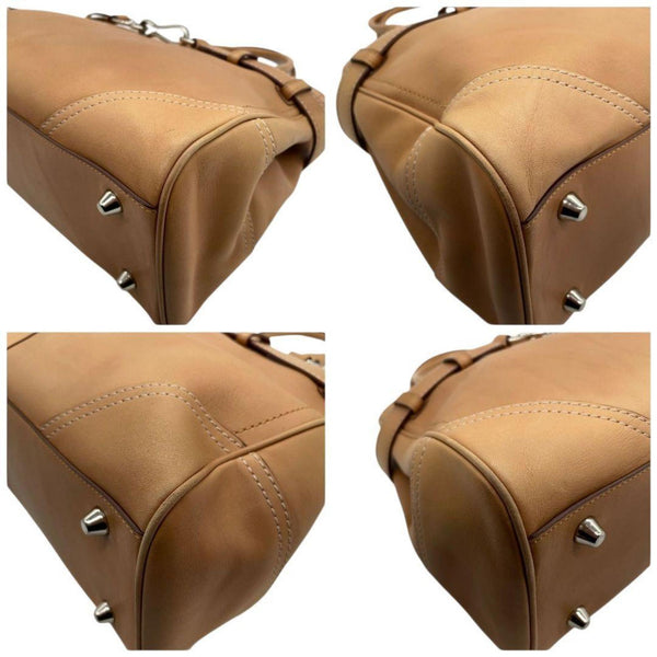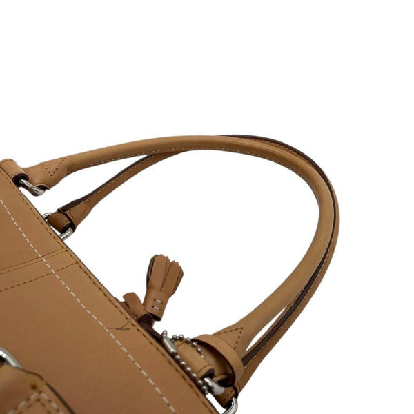 Coach handbag, beige leather, A4 size storage, one-shoulder, u12 size, tote bag, silver hardware, tassel, F08A71