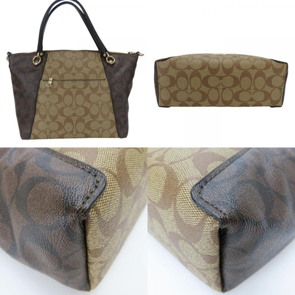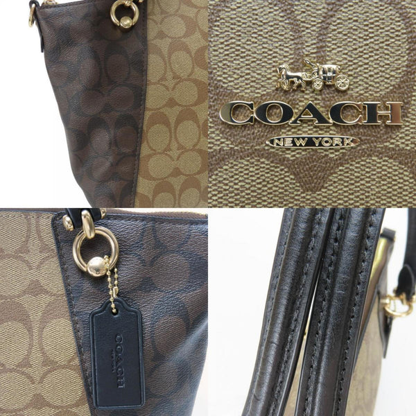 Coach handbag C6838 Signature coated canvas and leather shoulder bag in beige, brown, black. Women\'s.