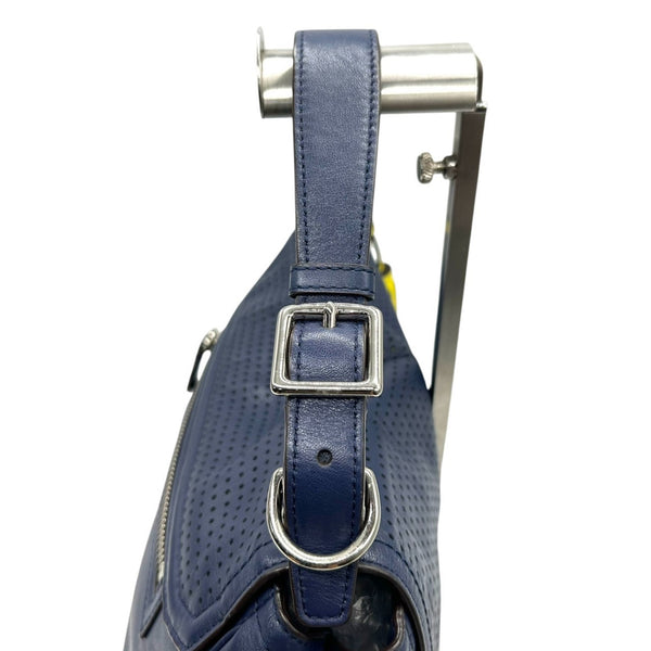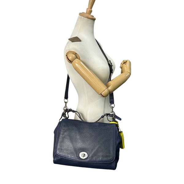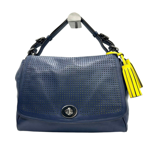 COACH Legacy 22386 2-Way Handbag/Shoulder Bag in Perforated Leather, Navy and Yellow, Women\'s, S31