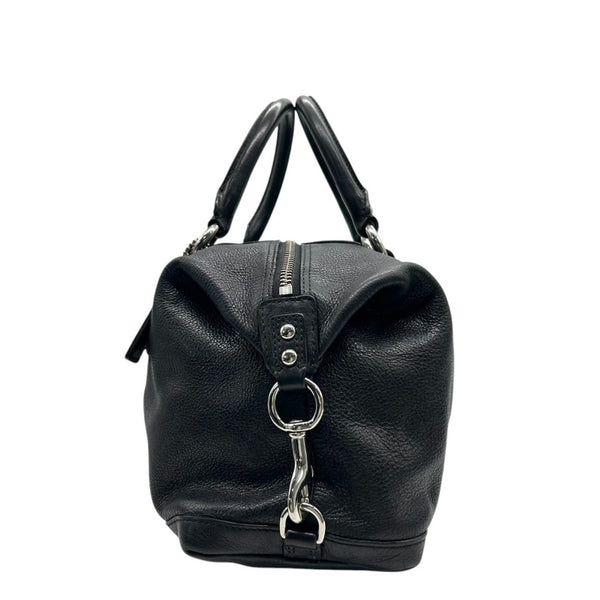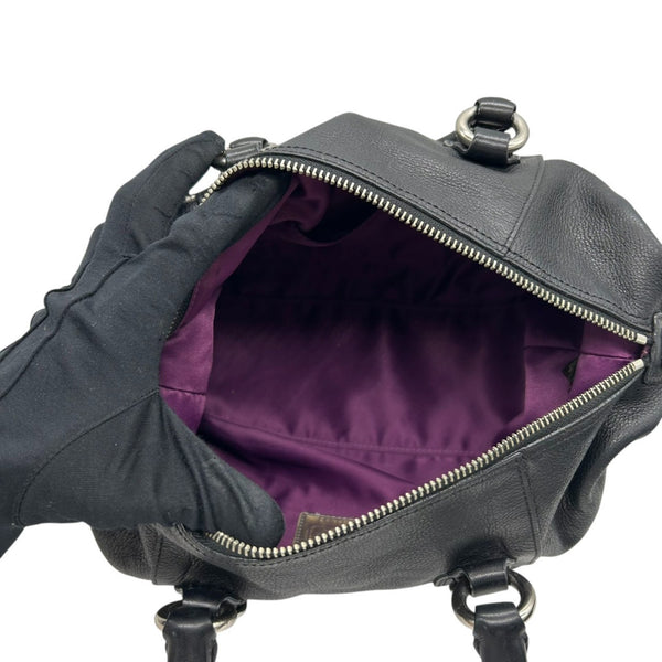 COACH Madison 2-Way Handbag/Shoulder Bag 12937 Satchel in Black Pebbled Leather with Gathered Horse and Carriage Logo, Women\'s, Size s86