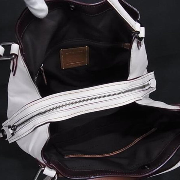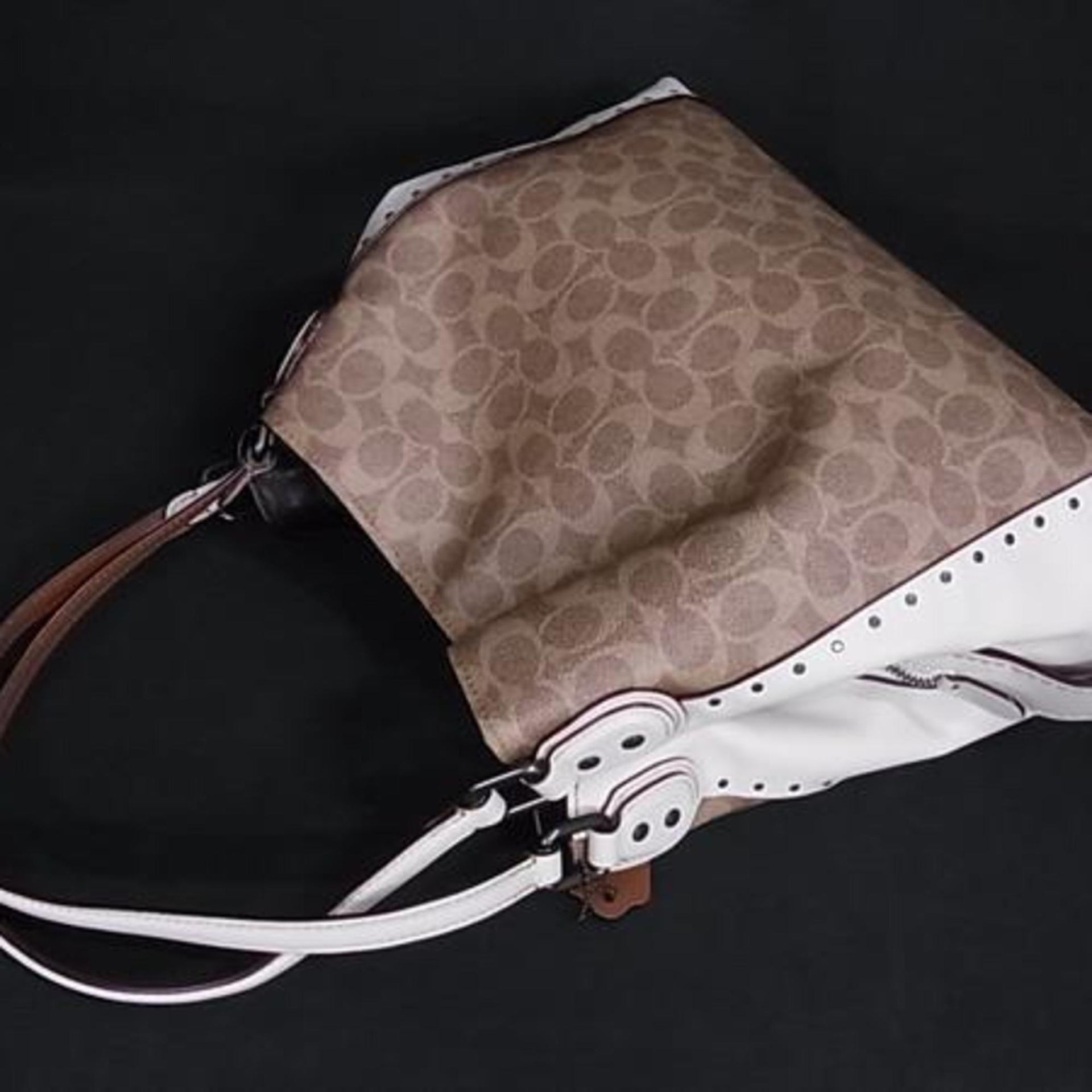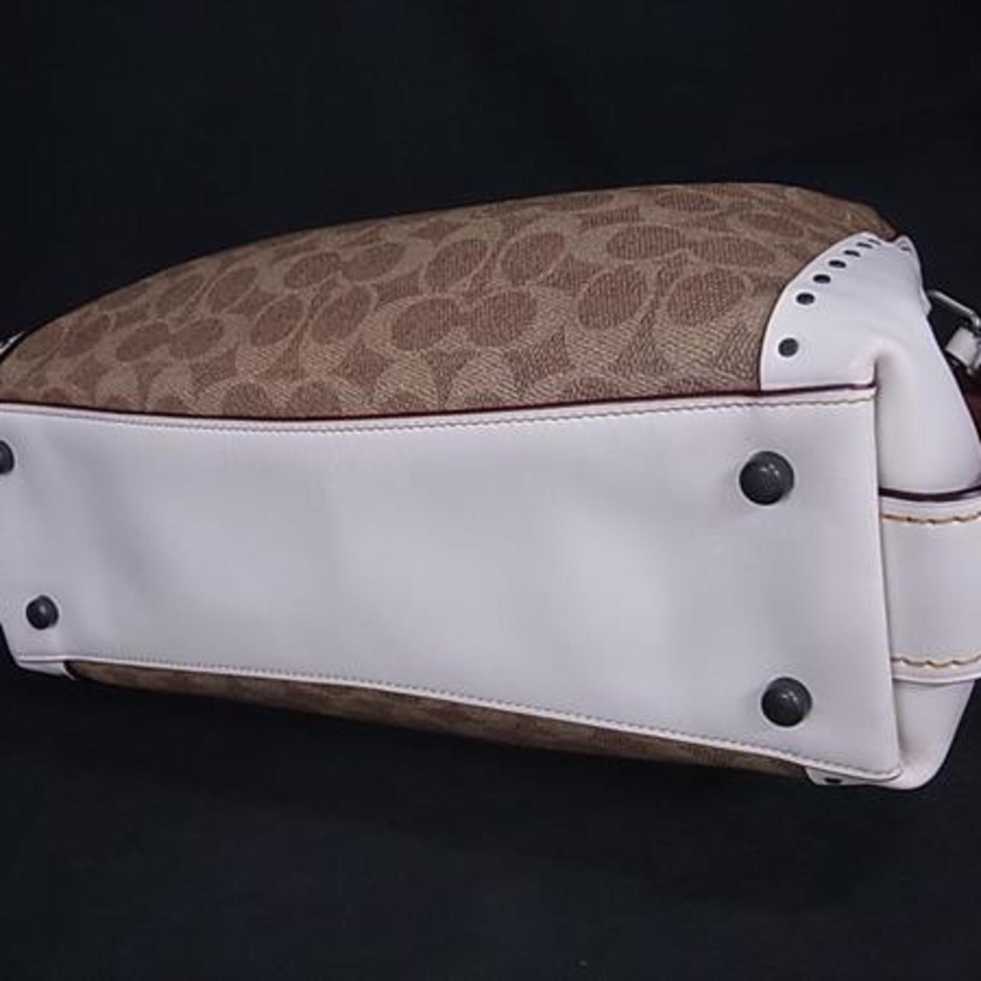 COACH Signature Edie Handbag 30220 in Brown and Ivory Leather with Studs Gunmetal Hardware