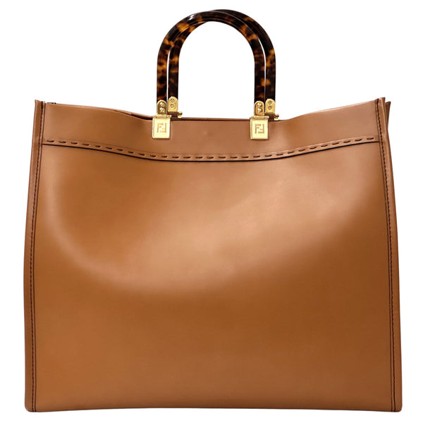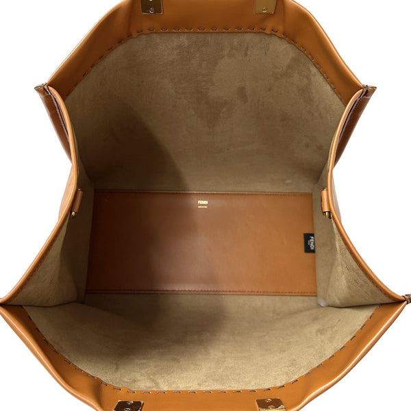 Fendi FENDI bag for men and women, leather handbag in Sunshine medium brown, large capacity, A4 size.