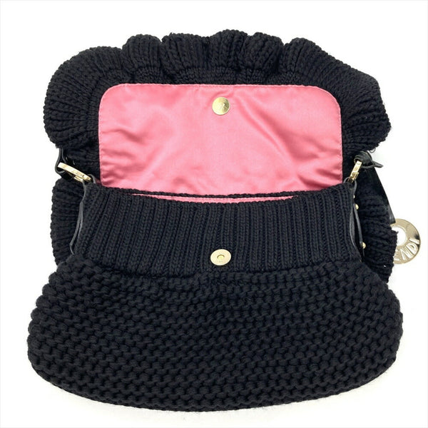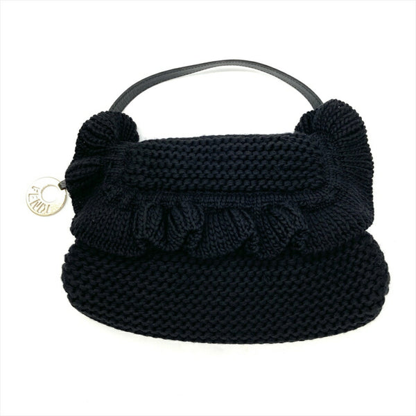 Fendi FENDI Handbag Wool Leather 8BR445 Black Women\'s