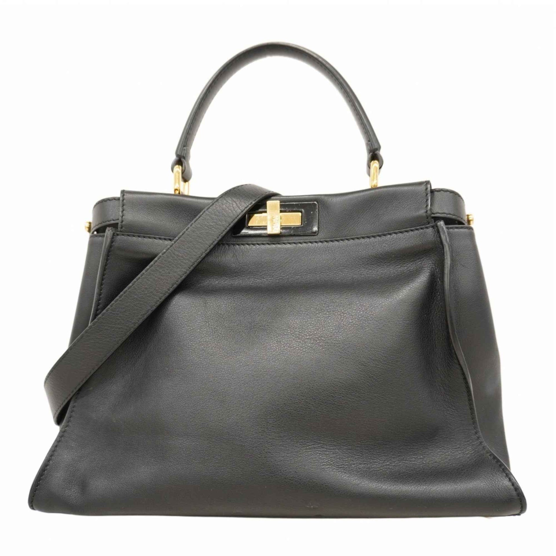Fendi Peekaboo Leather Handbag, Black, Women\'s