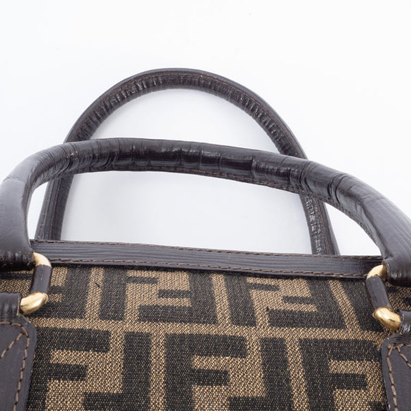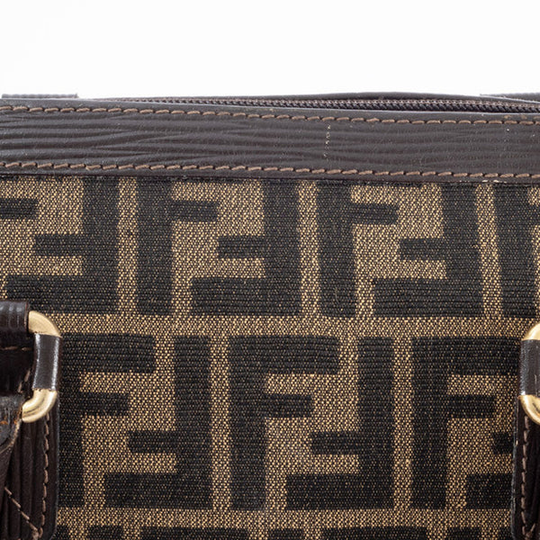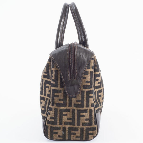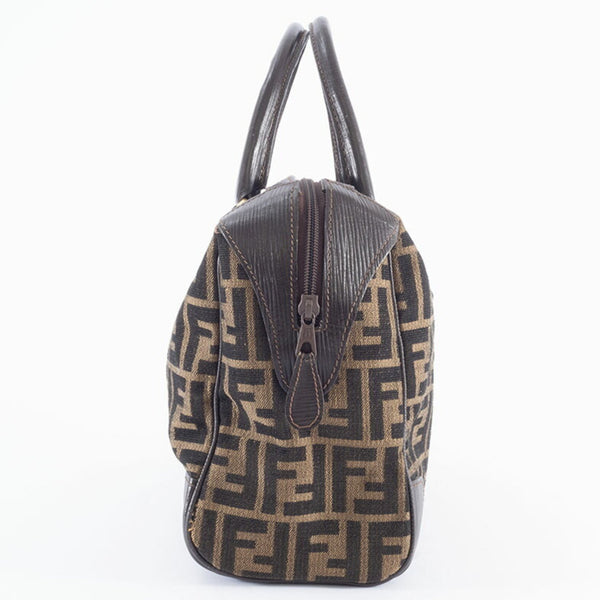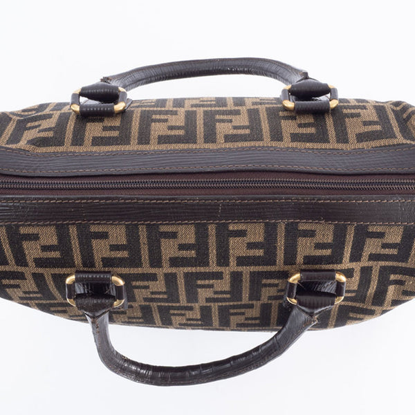 Fendi Zucca handbag in canvas and leather beige brown. Women\'s Boston bag.