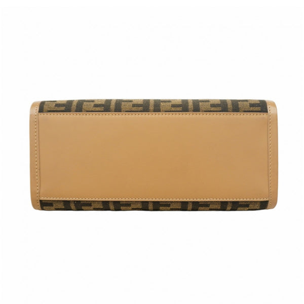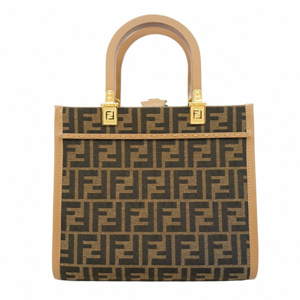 Fendi Zucca Sunshine handbag in nylon canvas and leather, brown, 2-way bag for women