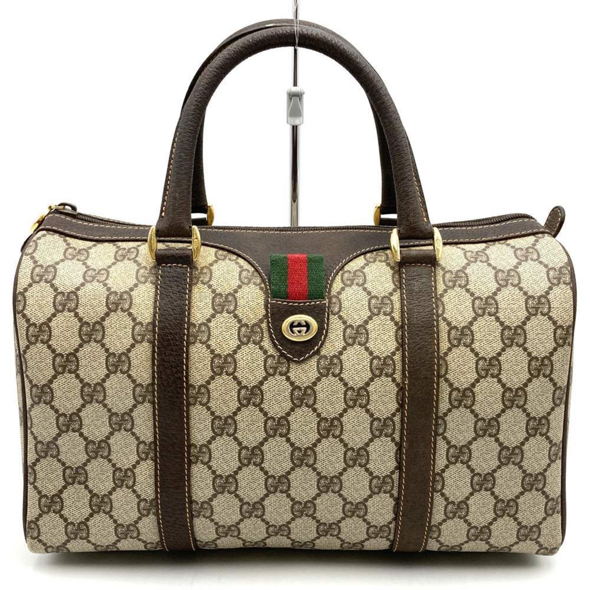 GUCCI 40 02 Boston Bag Handbag GG Supreme Leather Brown Women\'s Men\'s Vintage